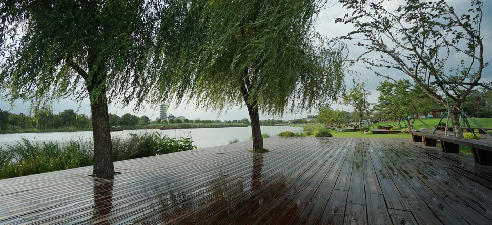 The design properly retains and utilizes the current masson pine forest, metasequoia forest and weeping willow on the shore to maximize the value of the existing environment.