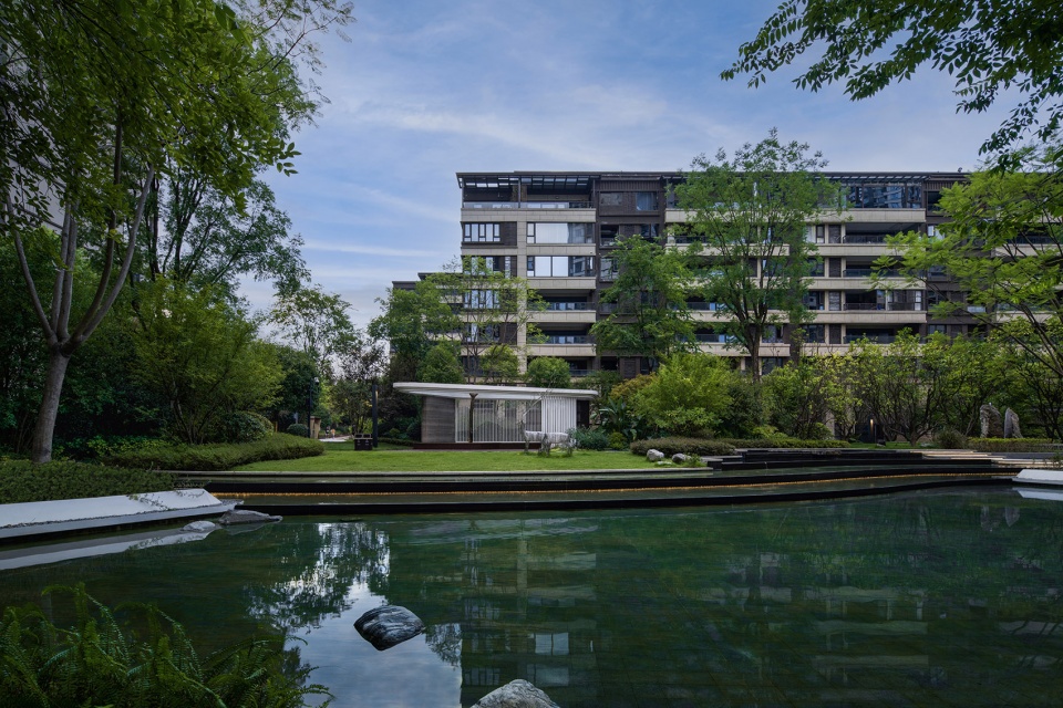 Two rivers and four banks Jialing River bank, day read Jialing river. However, the site is narrow facing the river and the river view resources are limited. The design consciously introduces a stream into the site, and uses the form of interior landscape to expand the depth of the site to the river view, just like a concept of “Looking at the Jialing River, I feel like playing on the river”.