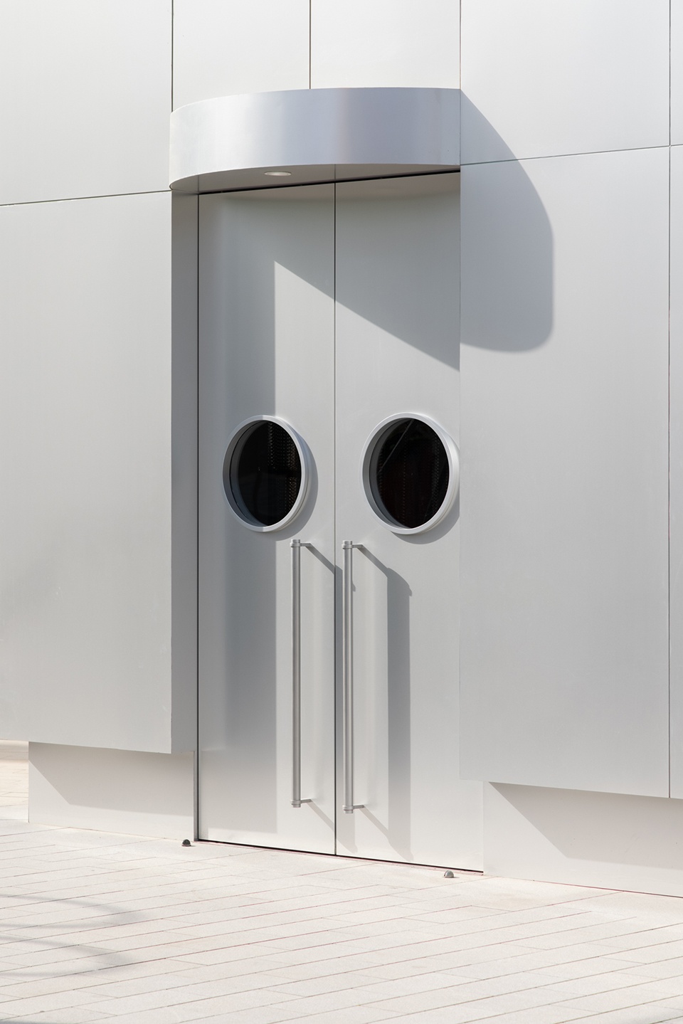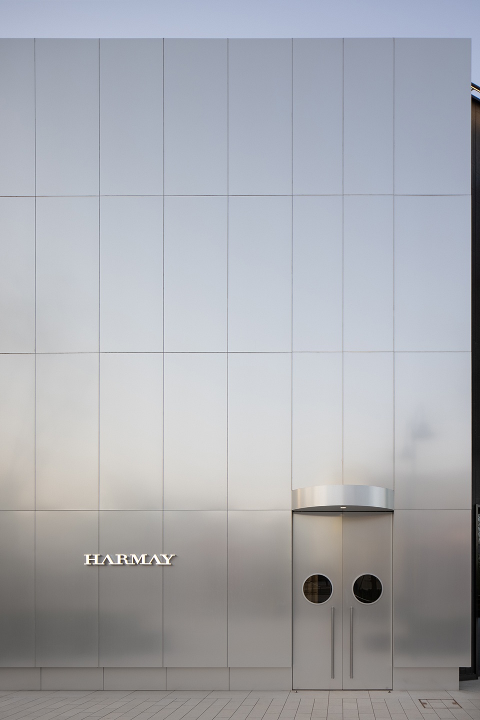 The first encounter is the façade, bold but introverted. It stirs up curiosity through its simplicity, in sharp contrast with its surroundings. Densely paved aluminum panels form a big silver screen dedicated to HARMAY. Walking through the cinema doors, you enter the foyer, a space wrapped with thick metal curtains and a grand central oval service desk reminiscent of the lobby of traditional theaters. In this place, all the excitement of the movie experience starts.