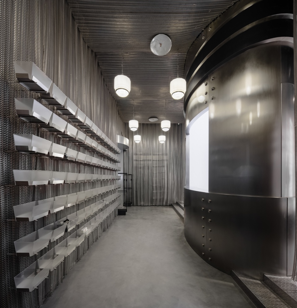 ▼被密集金属窗帘包裹的门厅空间,the foyer wrapped with thick metal curtains