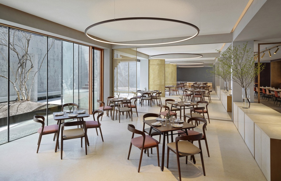 通过重新思考朴素建筑的本质,AIM的设计以干净和基本形态来表现极简。所有的材料都来自自然或当地采购,空间充满原始传统工艺气息。同时,精致图案和纹理细节也塑造了高端空间。