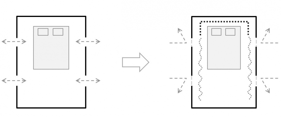 The building acts as a background for the relationship between humans and nature in the forest house, creating an opportunity for interactions and a strong spatial relationship with the forest.