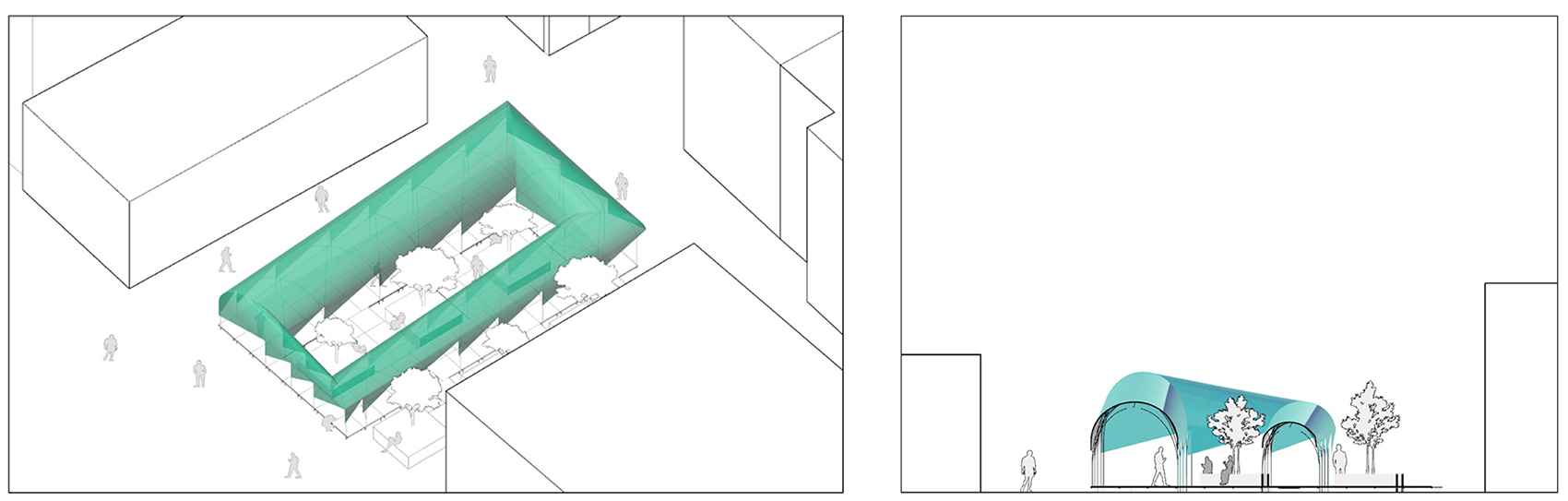 ▼众行拱轴测&剖面,axonometry§ion of the Accordion Arcade