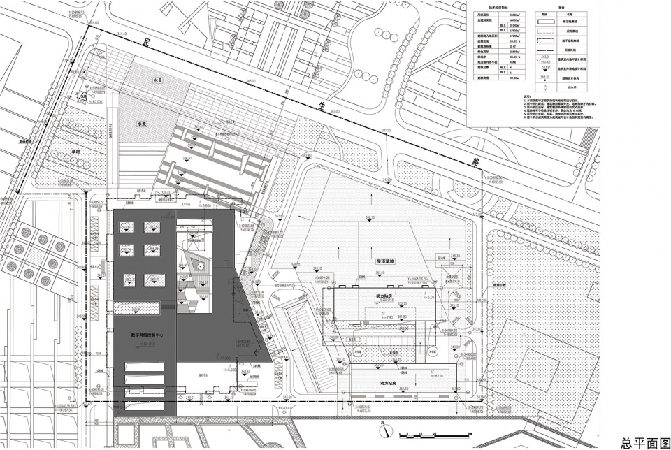 内部交通动线运用高科技的隔离技术实现参观功能。总控中心大厅为跃层结构,设置跃层参观廊,紧急处理中心用玻璃隔断分隔。为保持良好的声学特征,玻璃隔墙安装电动窗帘。电动窗帘的动作可与指挥或者参观功能进行有效集成,实现该区域针对不同人员在不同交通流线的功能操作。外部参观动线设计为环形参观流线,注重参观空间的景观连续性。参观者依次经过围绕中庭展开的连续环形空间序列,最终登至屋顶游览,沿途拥有流畅丰富的空间体验。建筑景观绿化设计与空间环境相结合,在建筑入口大台阶设计水景及花坛,形成连续的景观界面;沿建筑周边设计的多块集中绿地,相互辉映,形成丰富多层次的景观效果;在建筑内部设计多个景观庭院,创造优良的室内小环境,以求达到协调、优美、宜人的建筑空间环境。