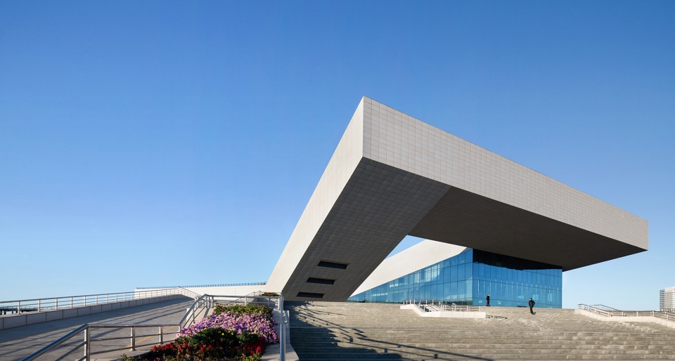 To accurately unite its form of an ark floating beyond the base and its high-standard function, the design uses a staggered plan. With the height of the roof falls from 31.17m to 11.20m, floor plans and enclosing walls become irregular as floors spilt into staggered layers. The project was listed ‘exceed-code irregular building structure’ in China, and thus has gone through an examine-and-approve process in terms of seismic performance. With an in-depth research and unique technical breakthroughs supported by data, the design team demonstrated the project in a jury formed by exceed-code structure specialists and eventually gained approval from the authority.