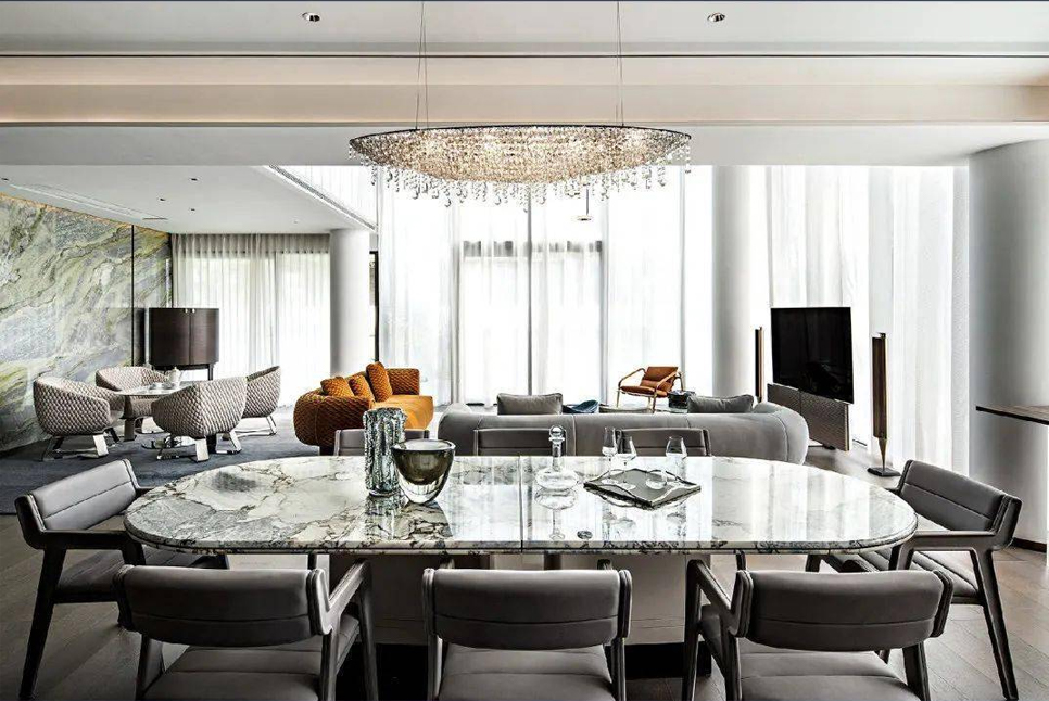 Step into the hall, open the door of noble life, double empty space, transparent style, ultra-high floor-to-ceiling glass Windows will introduce outdoor light, under the crystal chandelier, light and shadow are clever, create a dreamlike effect for the space. Whether it is a sunny day, or when the lights are on, the colors change with nature.