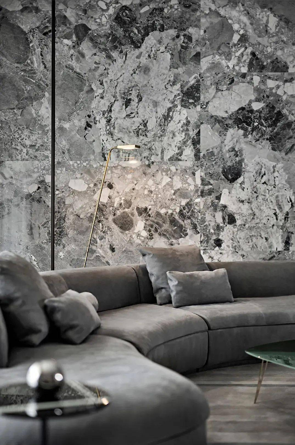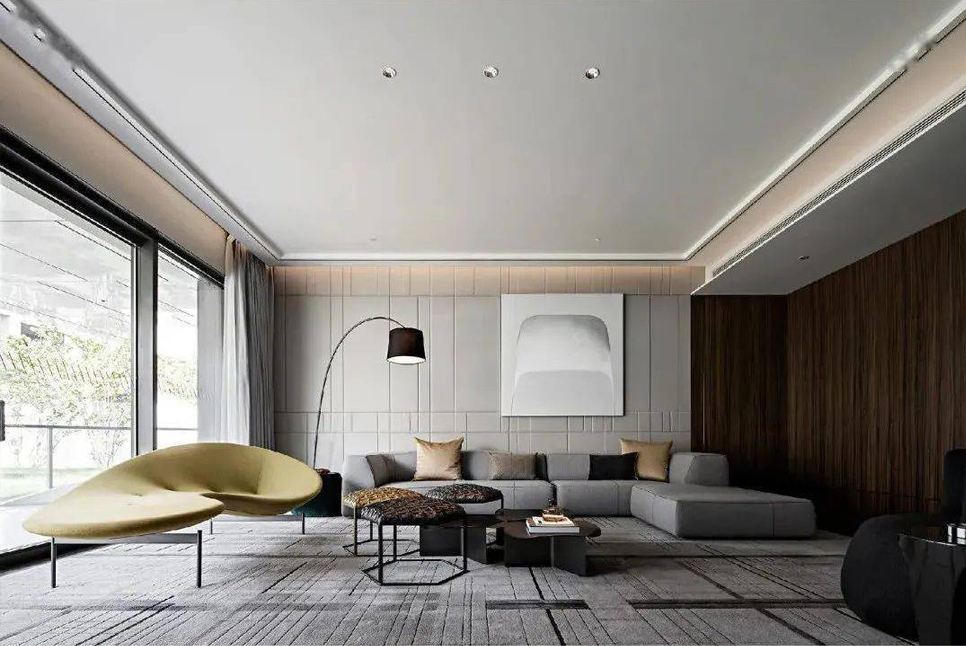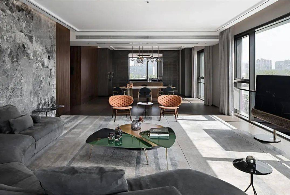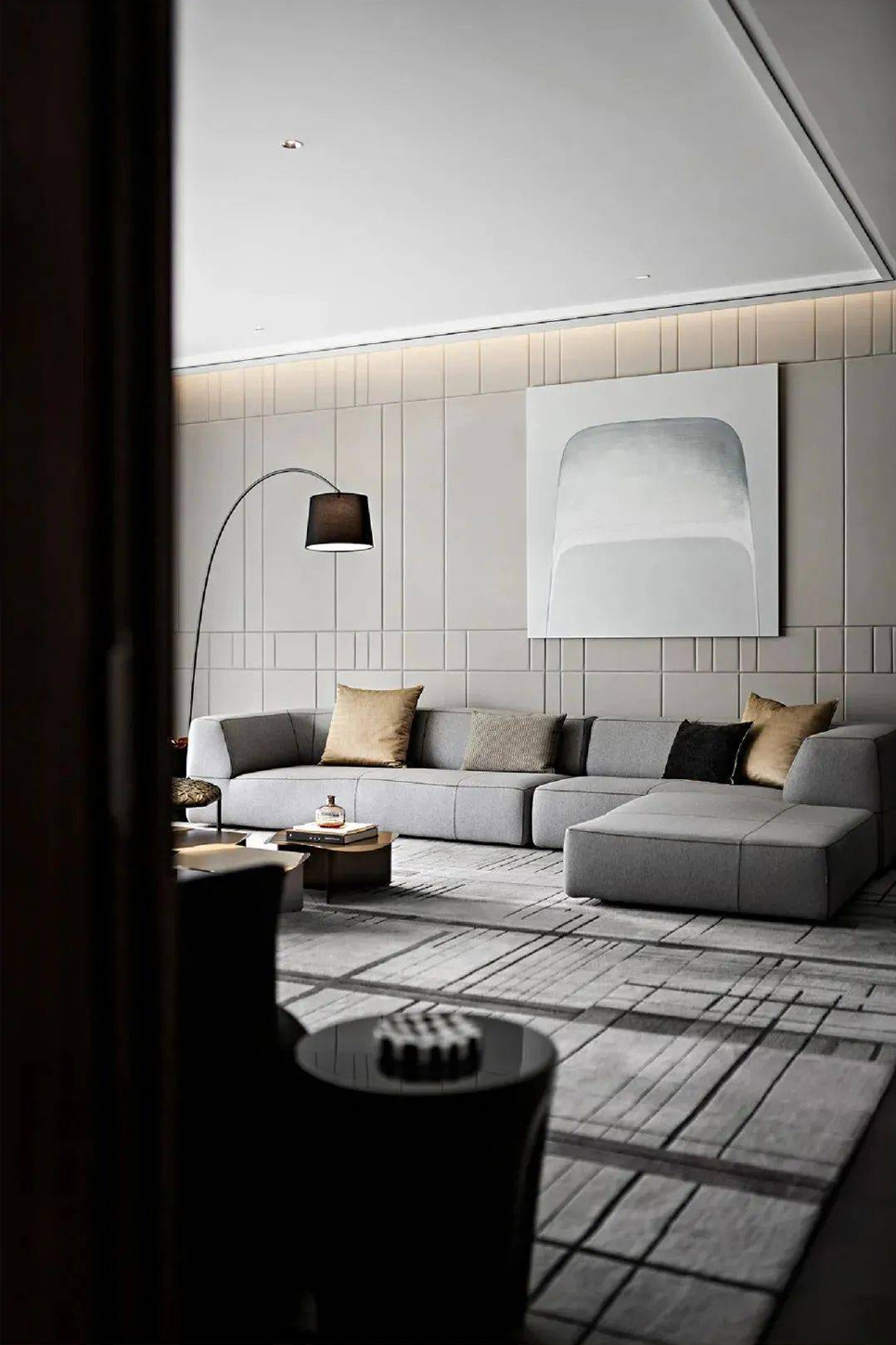 The space wall body selected wood as the decoration, with the design language, Leo gray stone on the back of the sofa brings natural ink texture, sending noble and fashionable quiet elegant, comfortable sofa tone and background wall set off each other, the atmosphere, showing extraordinary taste, the quality of life here can be seen.