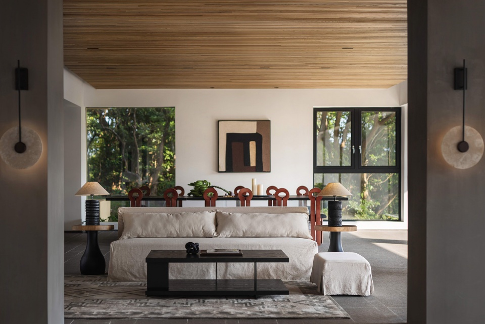As one of the forest system space system, with the same lush green mountains, the design to more simple and shallow contemporary language for the space to create a relaxed feeling. The selection of furniture and the consideration of color balance the relationship between indoor and outdoor, the space not only makes people slow down, but with thinking stay. Local blue embellishments cleverly echo a more youthful lifestyle, colliding with the fast-paced urban anxiety of the moment and evoking resonance, giving the space a more dimensional social feel.