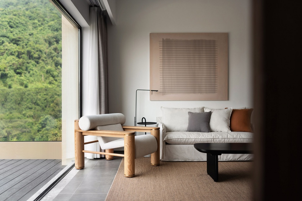 The large floor-to-ceiling windows of the resort rooms cut the outdoor mountain scenery into movie images. When a traveler enters space, he will naturally settle down, do nothing, look at the distant mountains and the setting sun, and silently look into his heart. For the ridge, the design has never been what skills, but through the understanding of life will be the original appearance presented, re-awaken the heart of the growing dull.