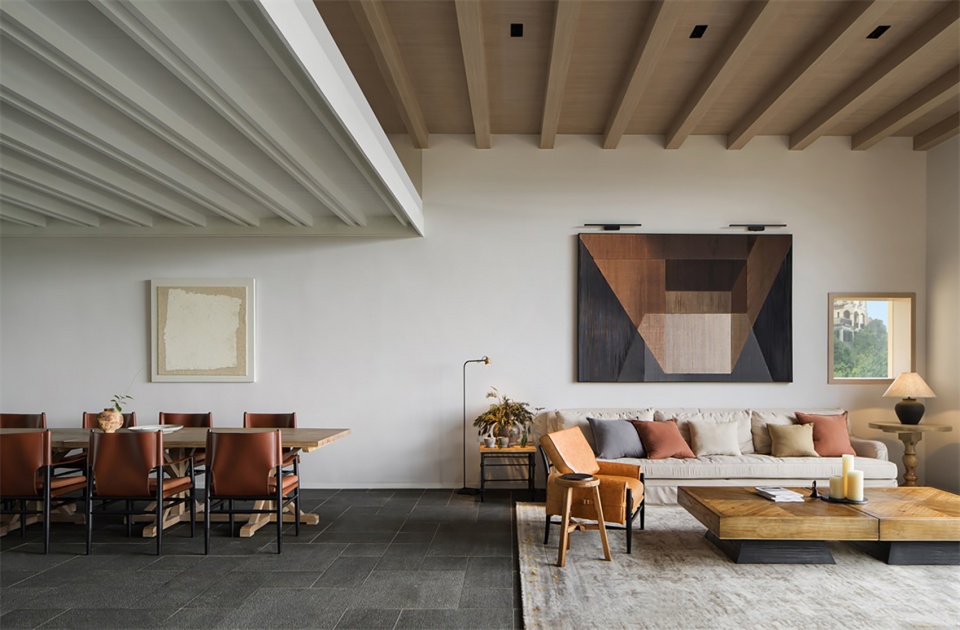 不同角度的光线形成了空间神秘的引力,当光从不同方向的窗口洒入室内,建筑本体的感性构成将生活的艺术贯穿其间,形成一种率真而自由的理想主义。也让我们对当下、过往、未来的感知多了一份平衡的智慧。