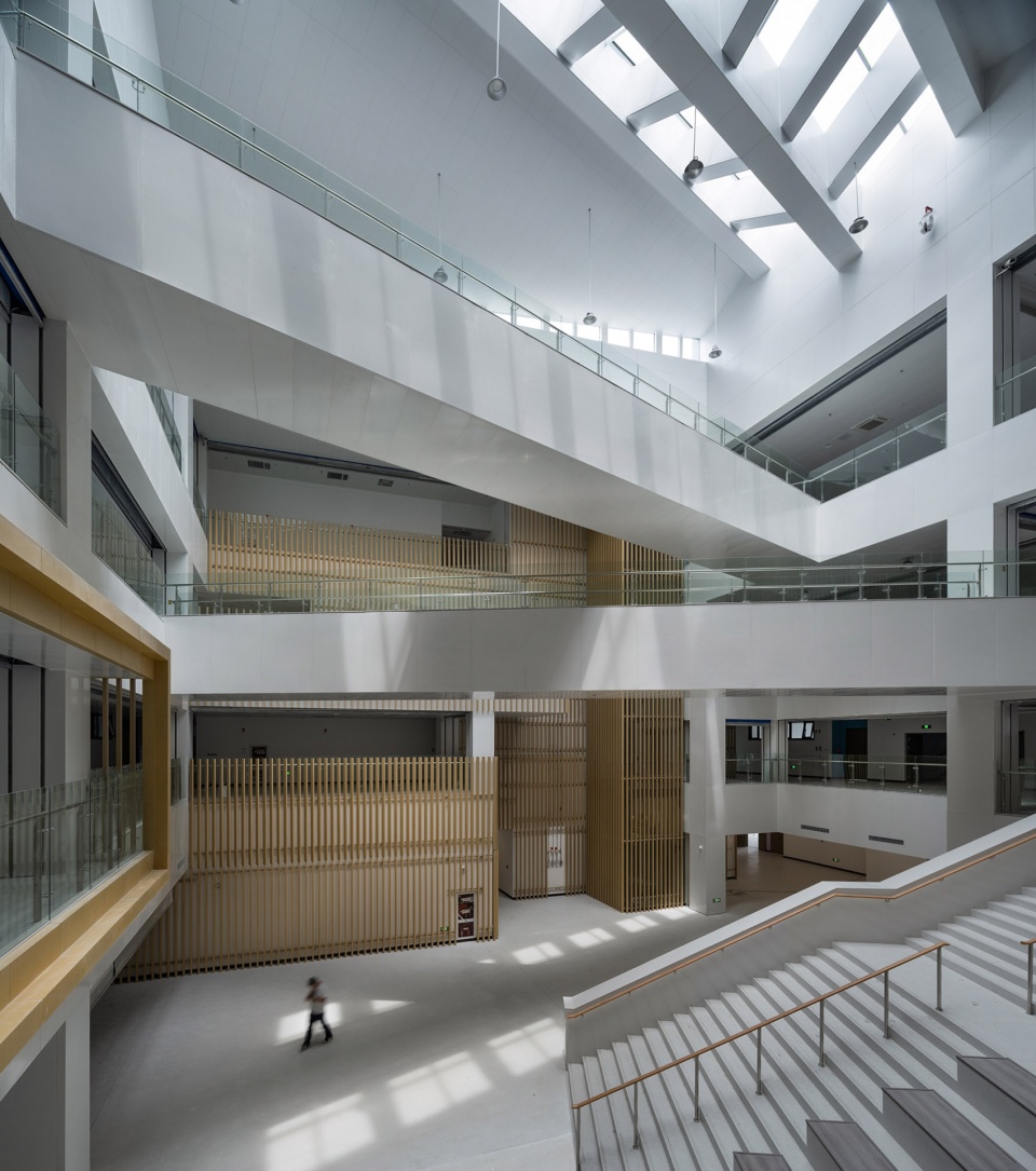 The STREAM center takes the form of a “complex”, which brings all the specialized educational housing together. Professional classrooms are arranged tightly around, while the open space for students’ self-study is set around the atrium, forming a rich choice of internal paths, providing diversified choices for students’ recess and communication, and solving the problem of students’ “blank hour” with nowhere to go caused by class scheduling.