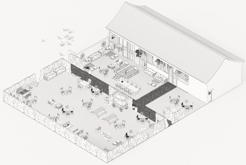 The existing form of the building looks like a contrast to the surrounding field, but at the same time the enclosed space allows visitors to reflect on their feelings from the perspective of people and people and nature. The atmosphere of the place is the core element of the design. We not only wanted to create a memorable space, but also to inspire a new understanding of the cafe.