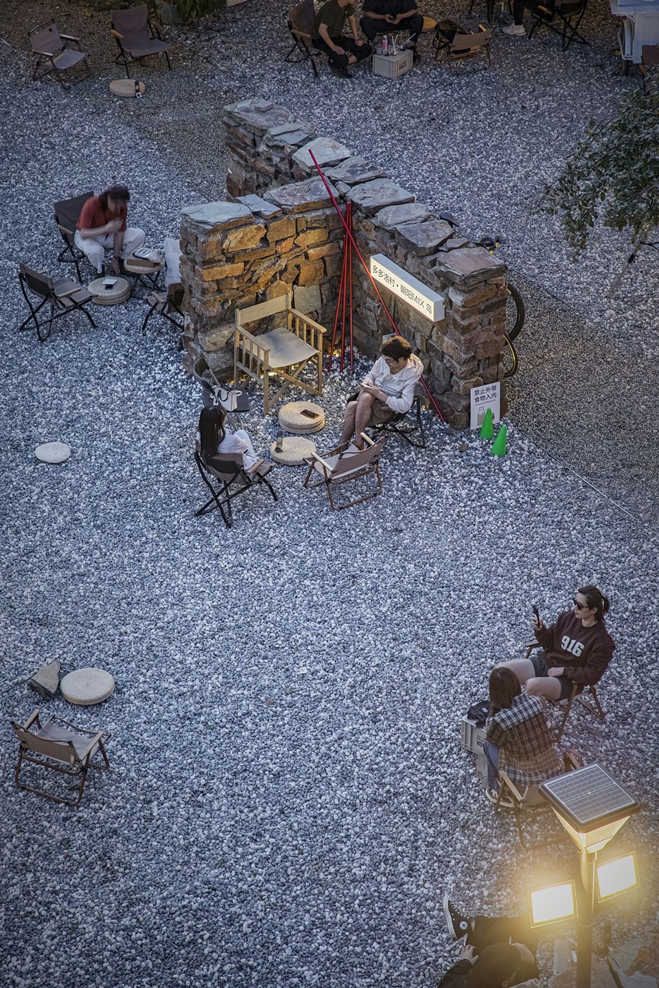 在400平方米的空间内,聚集了D.A.O coffee、野氪岛、浪个、北平冰匠及跳海这五个新兴北京本土品牌,共同构成了一个空间群落。疫情当下,未来咖啡馆的经营模式将会更多朝向多元复合商业空间的形态发展。对我们来说,多多洛村的改造不仅着眼于项目范围内的业态更新,更致力于形成街区范围内的商业对话,促进整个区域的价值提升。