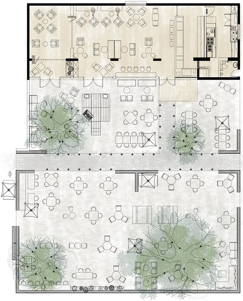 于一座城,咖啡馆是一种实现区域更新的方式,也是新社群相互连接的交际场所。当空间中陈列的物品与情绪得到共鸣,记忆无形间拉近了人与人之间的关系。我们希望打破传统咖啡馆的特性,用一种更放松慵懒的布局规划区域。