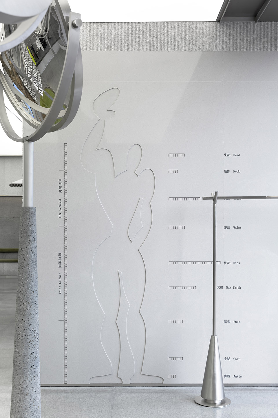 Daily fitness equipment and public facilities in urban parks: like extension railings, platform seats, waist twisters, hand rotating wheels, pavilions, street lamps, rough stones, tree and branches, etc. These familiar daily objects are brought into the space. Due to the different location and changes in function of the objects, it not only brings unexpected surprises, but also makes the space full of fun in experience.