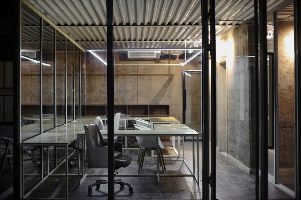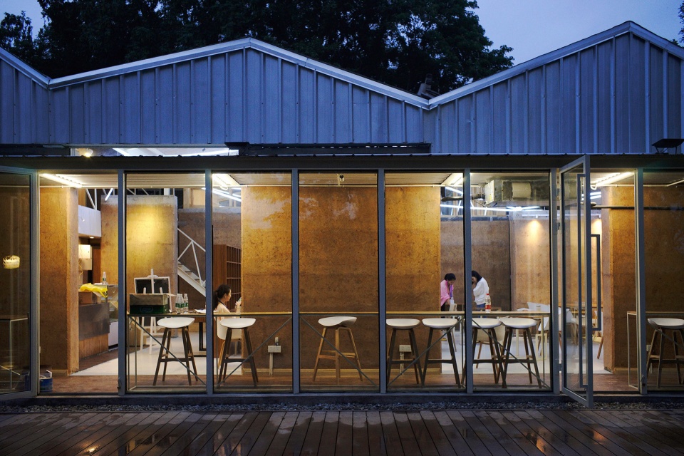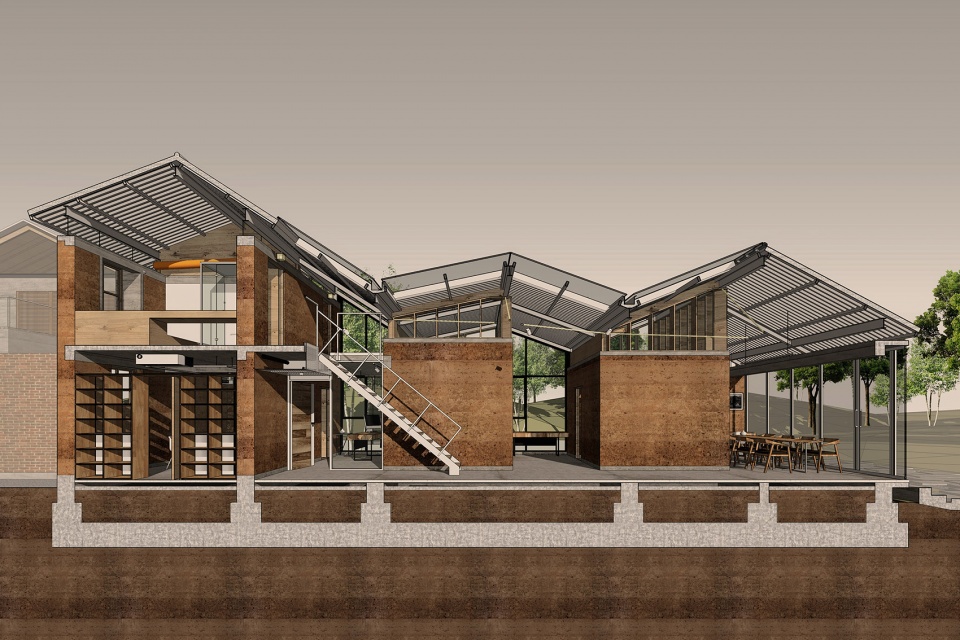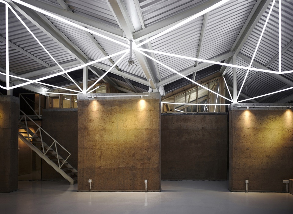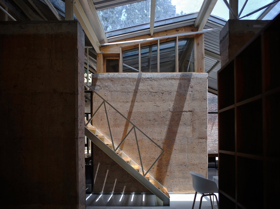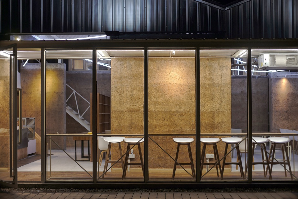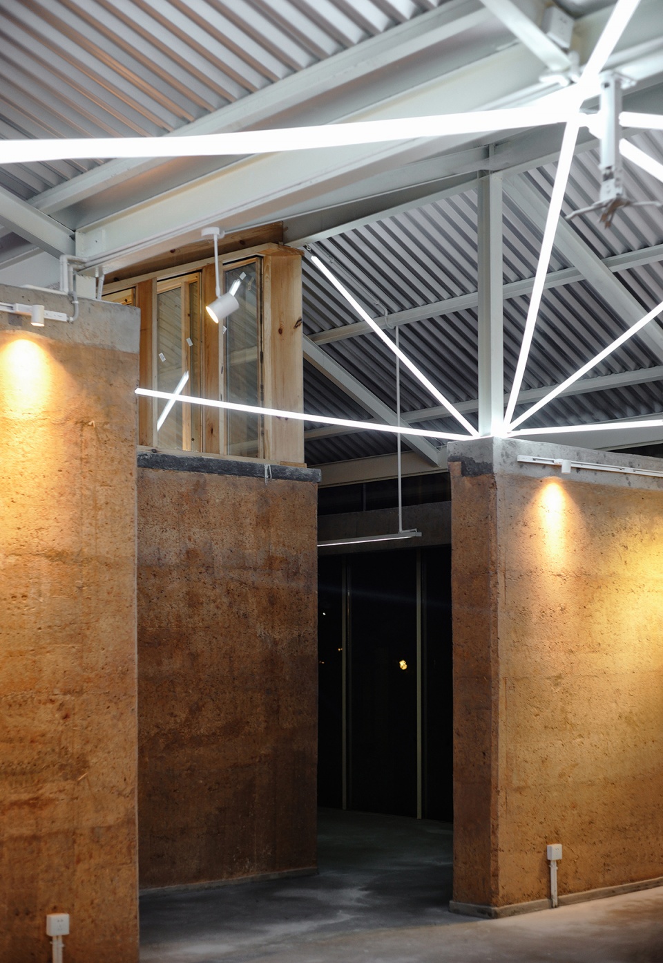 使用传统的材料来建造一个现代的实验空间。夯土作为结构体承托了轻质型钢的屋架。传统材料得以进入现代审美和现代生活,兼容现代化的声光电暖等设备。