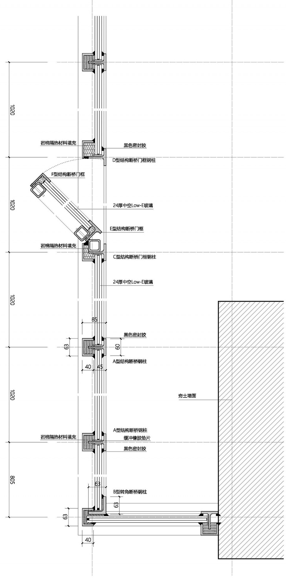 The side corridor system uses a special structure of broken bridge steel columns developed by Hezhuang Society. The steel column is both a load-bearing member and can also be used as a window frame. Hollow insulating glass is directly attached between the steel columns of the broken bridge. The roof structure of the side corridor adopts I-beam steel, and the lower flange is equipped with corrugated plates to form a basin-shaped space that can be filled with insulation.