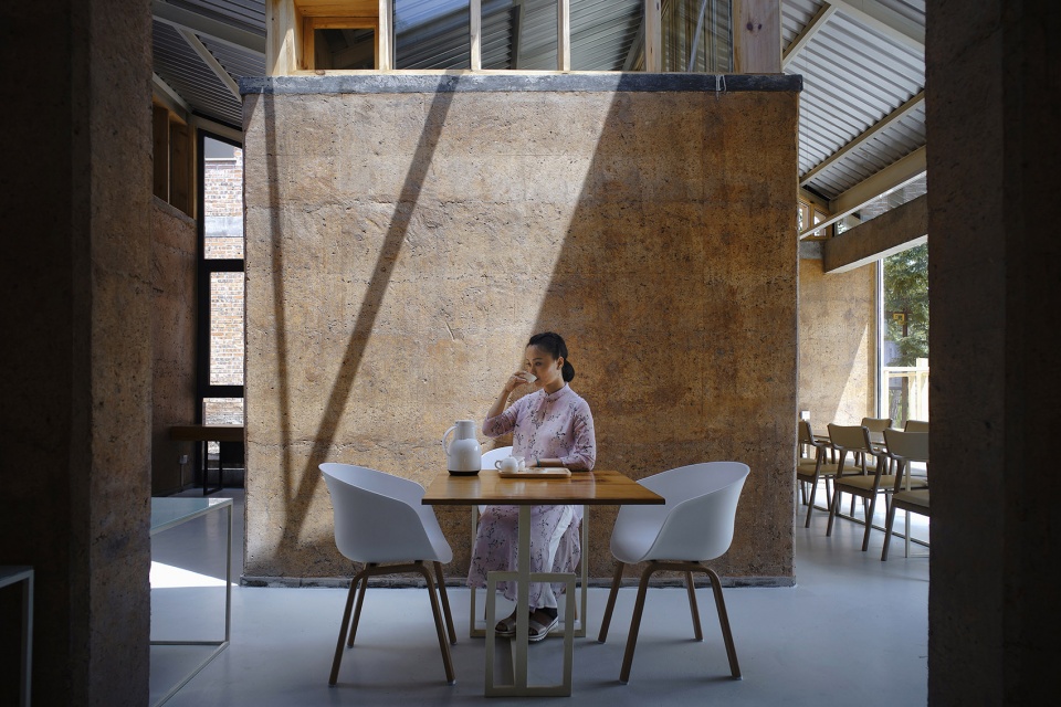 Traditional materials were used to build a modern experimental space. Rammed earth supports lightweight steel roof trusses as a structure. Traditional materials can enter modern aesthetics and modern life, compatible with modern sound and photoelectric heating and other equipment.