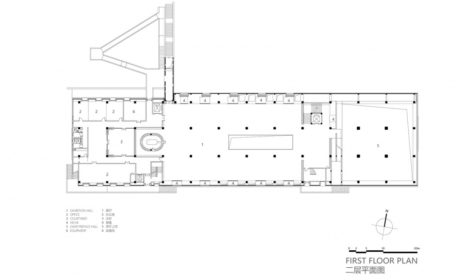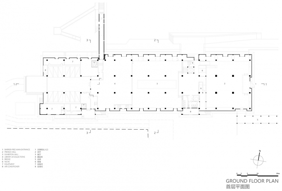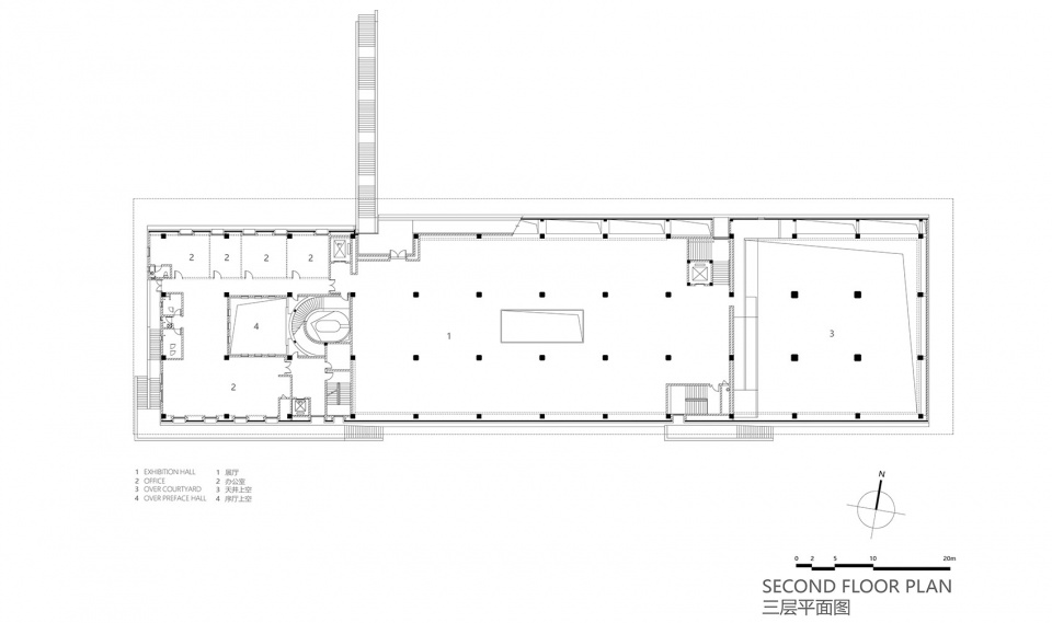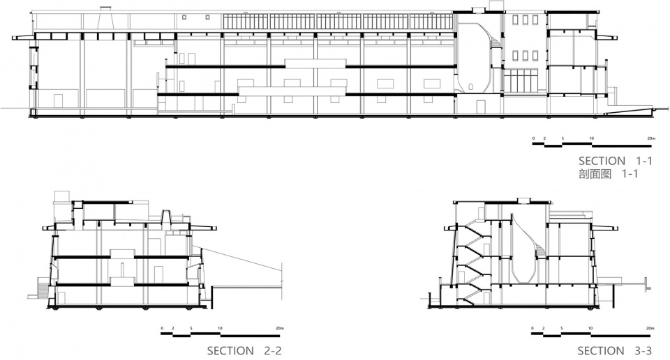 The main body of the museum is an abstract summary of the imperial kiln and the imperial court with a forceful mass and a formal plainness inspired by the protruding eaves of traditional Chinese architecture. The internal space is divided into three parts – the abstraction of the palace; the production, transportation and the use of Jin Zhuan, and the abstraction of the brick kiln. The museum is neither a kiln nor an imperial court, but a contemporary public architecture that combines the embodiment of both.