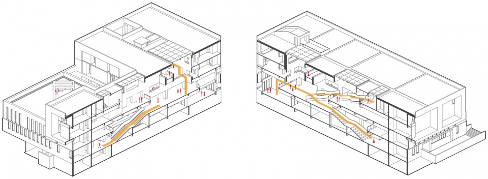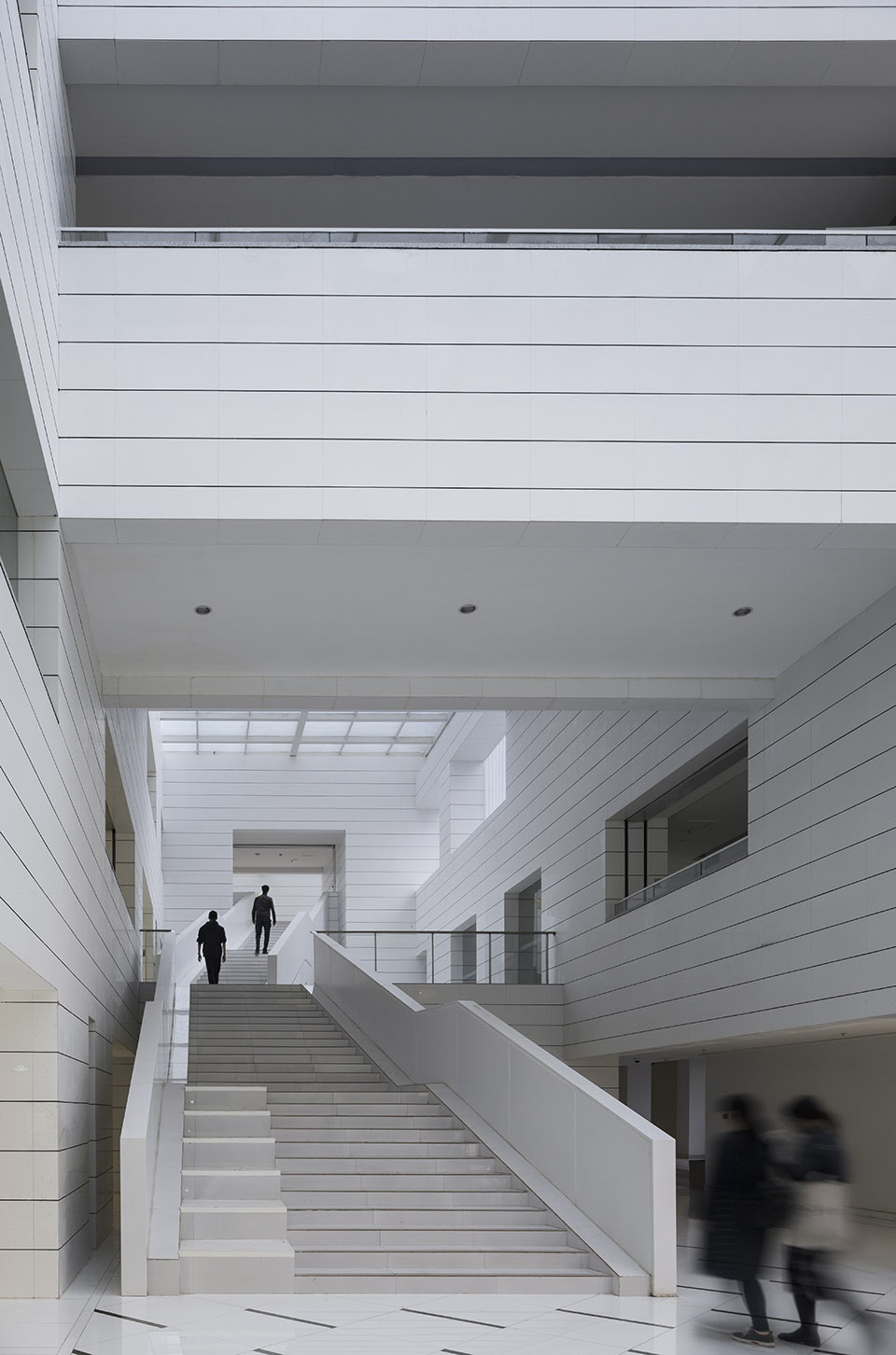 The courtyard, the patio, the terrace, the slit and other local spacial prototype are widely used in the 20,000 square meters building, while the techniques of cutting and hollowing out in the different dimension weakened the building to the city space oppression. Thus the building was shaped into a solid whole of a strong sense of “sculptural” at first glance, while breathable slits flowing underneath . This also responds to the typical spatial forms of Yuelu Academy, the predecessor of contemporary Hunan University, which effectively sorted various complex constraints such as the historical culture, climatic environment and characteristics of the site.
