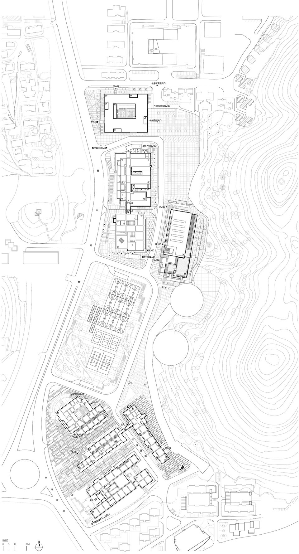 The project Tianma new Campus of Hunan University is located in the Yuelu Mountain University Research Park with a site area of 18.96h㎡. The building sits in between Tianma Mountain and Yuelu Mountain on its east and west, borders the old campus to the north and Tianma student apartment to the south, where the wild nature and social activities co-exists. The new campus masterplan, a complementary extension to the old campus, was launched in 2003 and completed in 2016 after twist and turns.