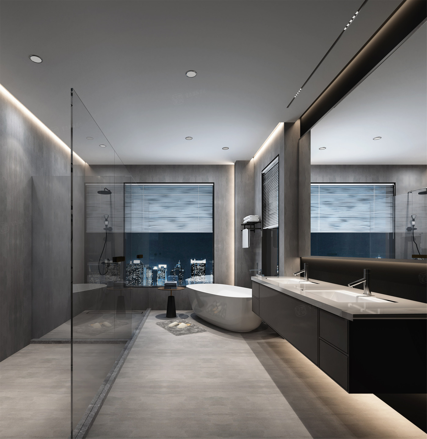 设计其实并不单以特定的布局和软硬装搭配为目的,自然光线的摄入、窗镜傍晚城市的倒影,无一不展示了独特的设计手法及生活界定,空间应当是与室外、与外界互通的,供人以享受的、现代时尚的空间,是在中心,也能够在心中给人以一份例外的触动。