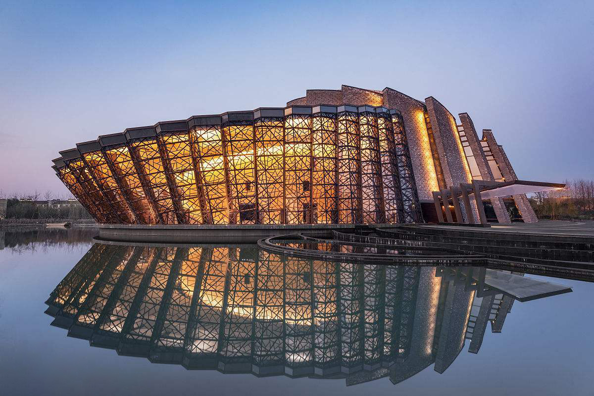 The design of Wuzhen Grand Theater is based on the idea of juxtaposition. The two ellipses of one virtual and one real are ingeniously combined. The overlapping space is the public stage space, which not only meets the functional requirements of the space, but also contains the meaning of festivity and prosperity. The exterior of the theater is decorated with thick Beijing bricks and old ship wood ice cracked window lattices. The ancient and vicissitudes of the appearance and the long history of the Jiangnan water town reflect each other. A theater with the most modern functions coexists harmoniously with the 1300 year old Jiangnan Ancient Town. The Grand Theater has won the reputation of "Dream Theater" for its graceful demeanor.