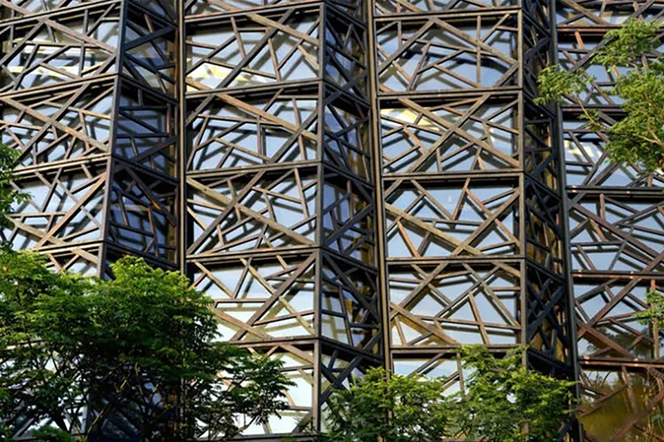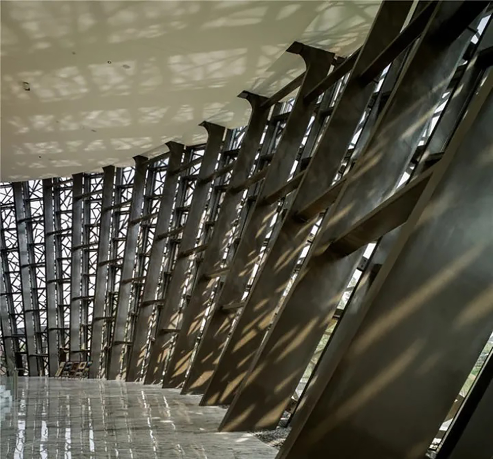 Wuzhen Grand Theater is used for variety, and its interior is mainly a Class B medium-sized theater that can accommodate about 1200 variety performances and 600 multi-function halls, as well as corresponding supporting facilities. In order to meet the needs of development, Wuzhen has become one of the major cities of international drama festivals in cooperation with relevant activities. The shape is divided into two parts: the east part and the west part. The east side mainly uses the brick inclined wall as the external decoration material to show the massive sense of volume; The curtain wall system on the west side is composed of LOW-E insulating glass, aluminum material, wood louvers, etc., which mainly displays the sense of transparency.