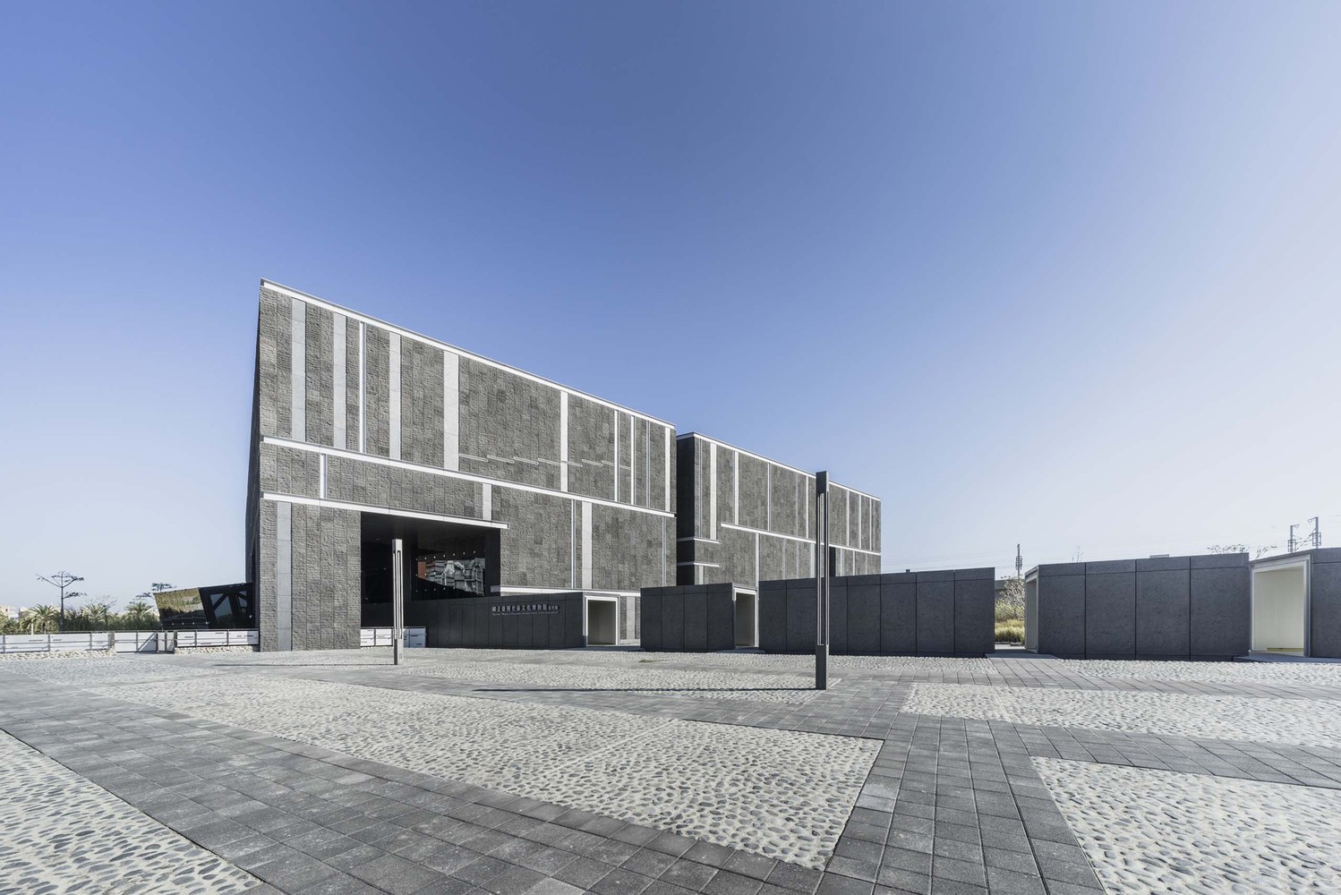 The building is composed of two groups of different geometric dimensions: one axis points to the north, which coincides with the orientation of ancient burial, representing the order of the past; The other axis follows the existing urban street texture and intersects the main axis by 19 degrees, representing the existing order.