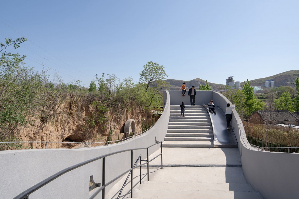 Sunyao Old Village is located in a mountainous area far away from the town center. Since 1996, villagers have moved into the brick-concrete houses in the new village next door one after another, leaving behind many aged adobe houses and cave dwellings. Years have passed, and when the abandoned village was examined by the architect, its surrounding undulating mountains, the barren cliffs adjacent to the site, and the vast fields above the cliffs all manifested rich topographical relationships that would evoke design inspirations.
