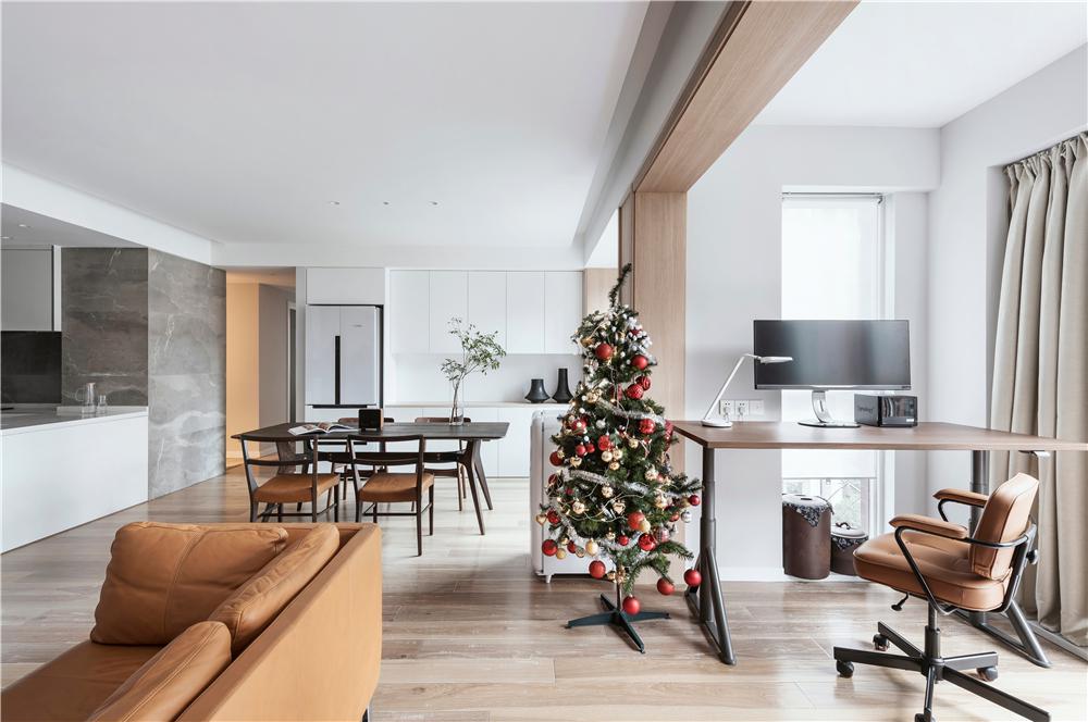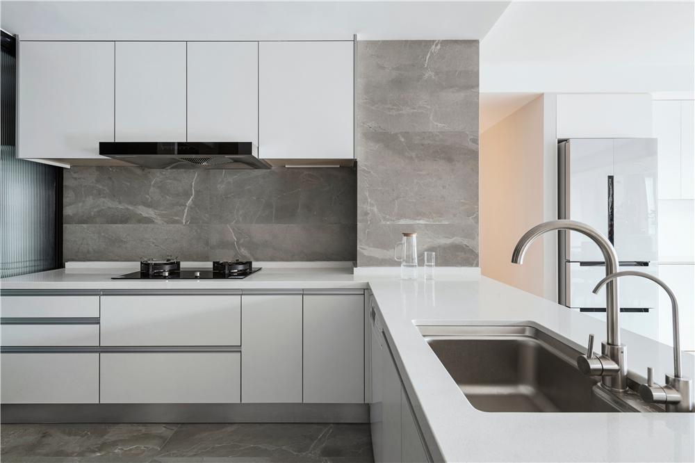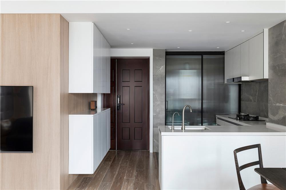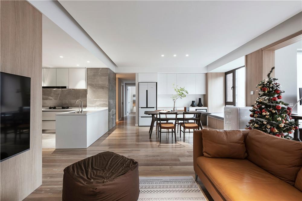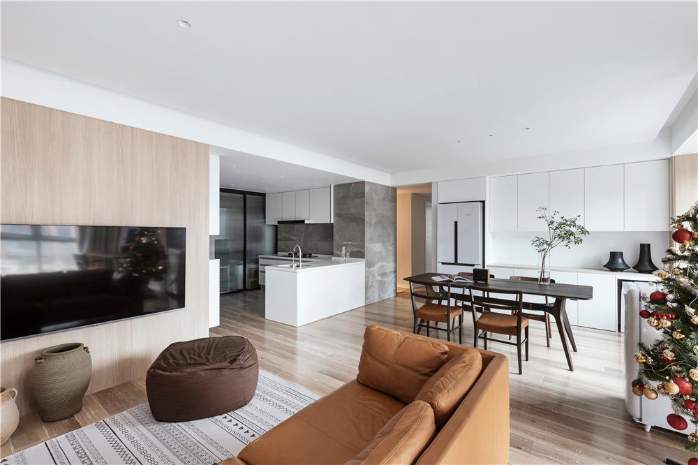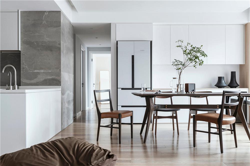 Thus, the concept of overall design is extended, which is absolutely integrated with clear zoning and unified coordination by needs. Around the feeling of transparent and bright space, we have made the kitchen open. The transparent space layout connects the kitchen with the dining room, completes the rationality of the subdivision functions of the living room, dining room and kitchen, and creates a sense of rhythm of the space. At the same time, the whole is connected in series to give the space enough independence and permeability, so that the unobstructed vision can reach each other.