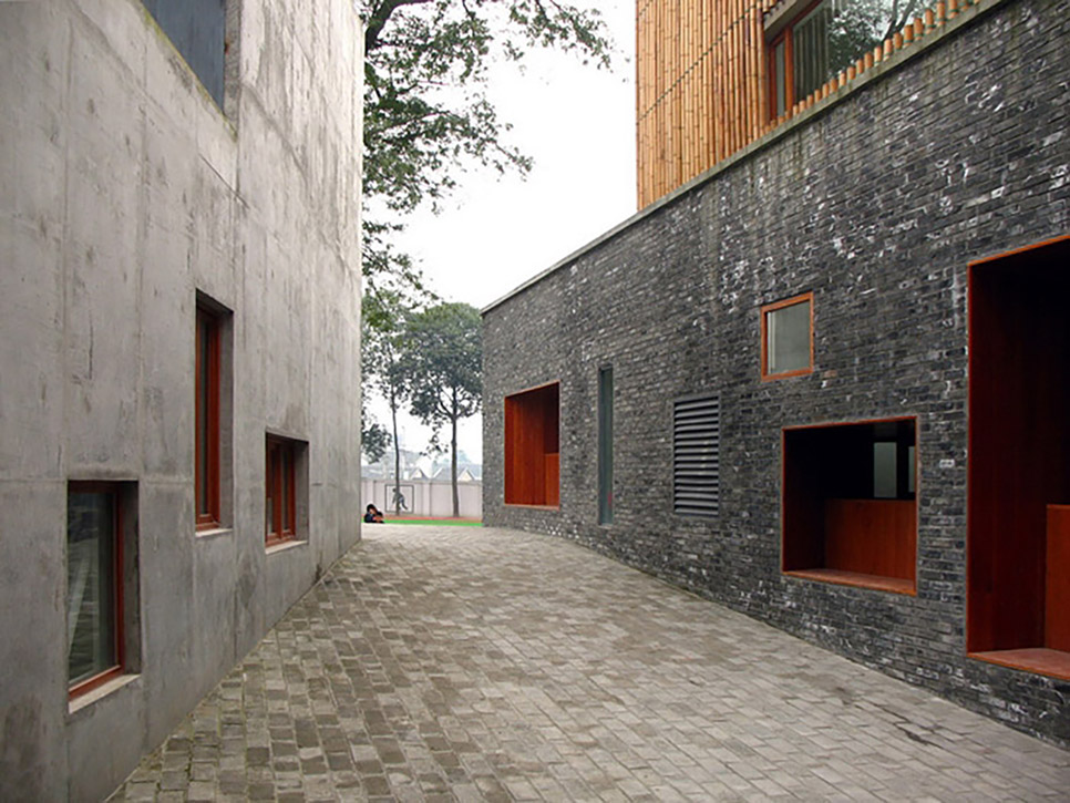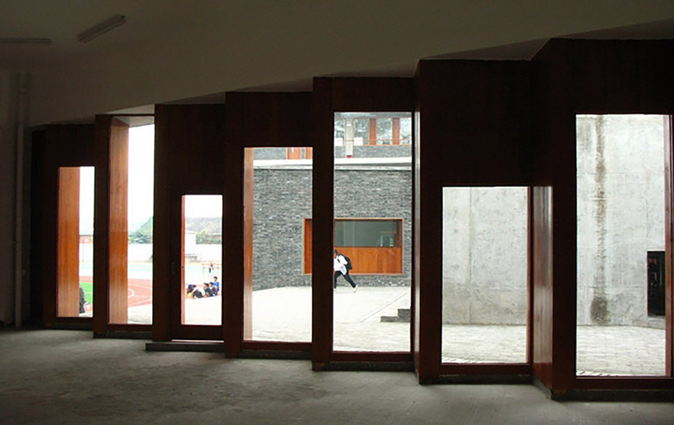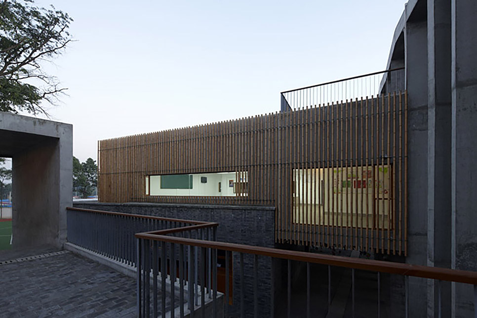 The design responds to Sichuan’s hot and humid climate. Sunshade device, natural ventilation and heat reduction are important elements considered in design. We also explore to maximize the use of local resource and craftsmanship which can be acquired. Local materials such as wood, brick and bamboo are used for windows, walls, and ceilings. The recycled bricks from earthquake are used in pavement. Cast-in-situ concrete are used for exposed structure. The construction is completely done by a local contractor. The construction cost is well controlled within the budget of RMB1500yuan per square meter.