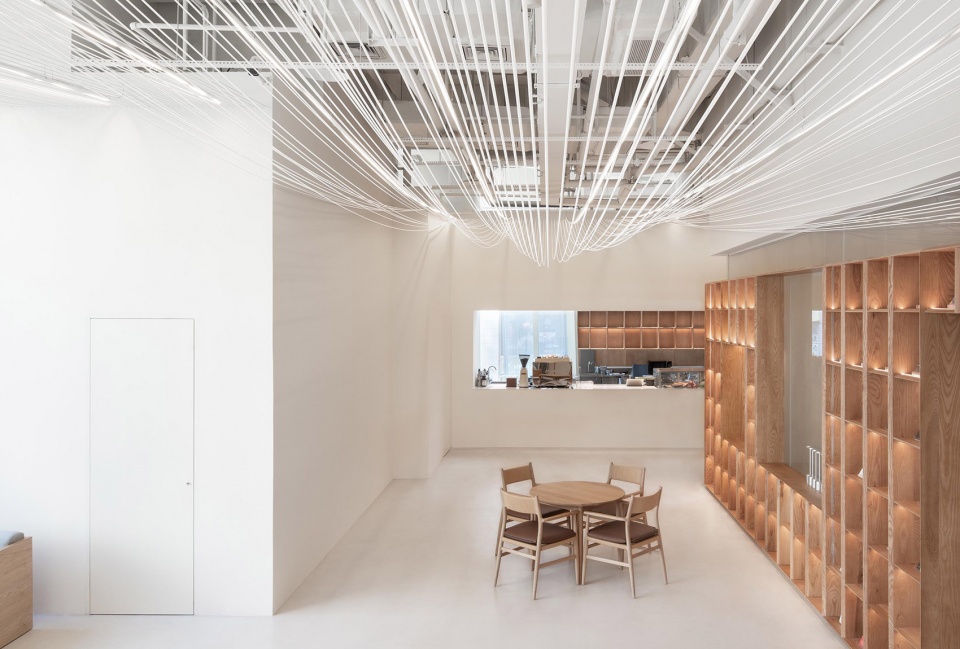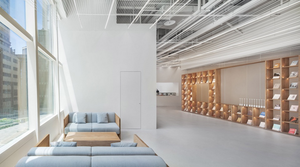 上层则作为吊脚楼的连续大屋面,借由 6mm 线绳将咖啡、下午茶、餐厅、酒吧与书店整合为一体,在相异空间转换之馀,仍可感受到光影、时间、场所、环境的变化。