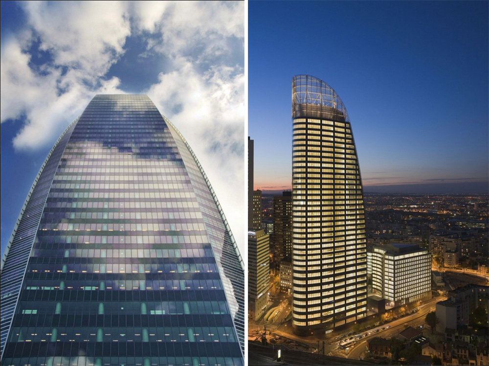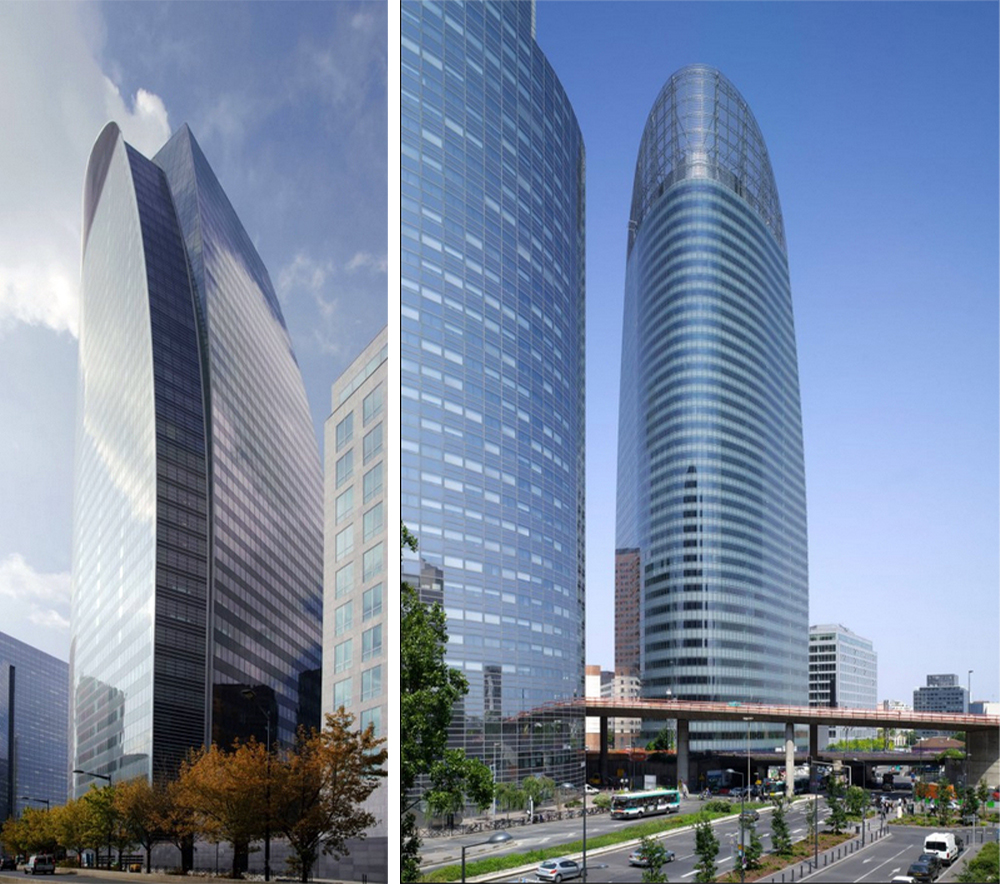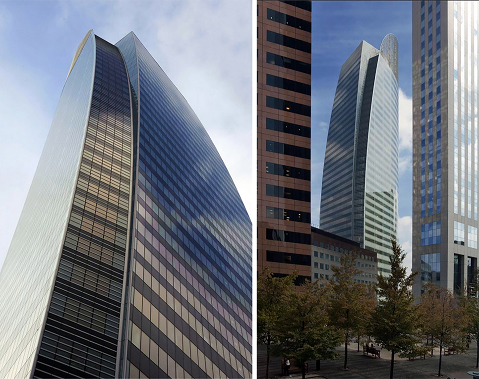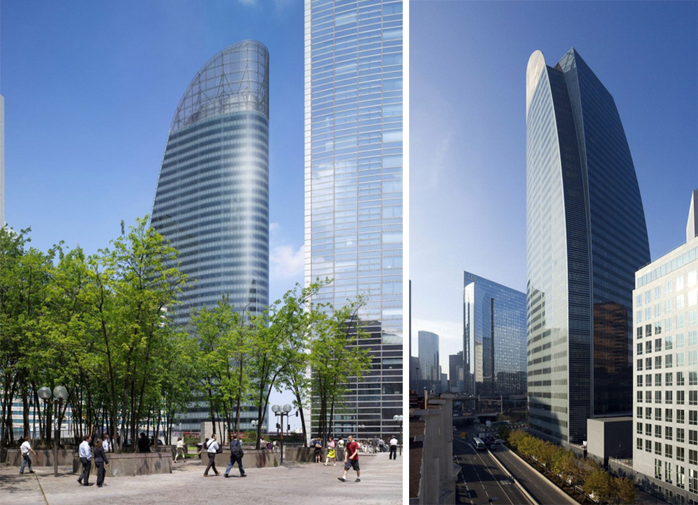 法国燃气苏伊士集团总部T1大楼位于法国巴黎拉德芳斯区,建筑面积70,000平方米,高200米。法国VP在整个建筑的设计上以几何开头,南部立面垂直而下,北部立面则由循序渐进的曲线切割面组成,形成巨大的丝网玻璃花瓣般造型。大楼的每一层均享有巨大的全景平台,根据太阳照射角度的变化,限制太阳光照的热量,可因朝向的不同从而产生不同的感知,并与复杂的都市环境相融合,整个设计与大楼的高质工作环境和高效的功能性相得益彰。