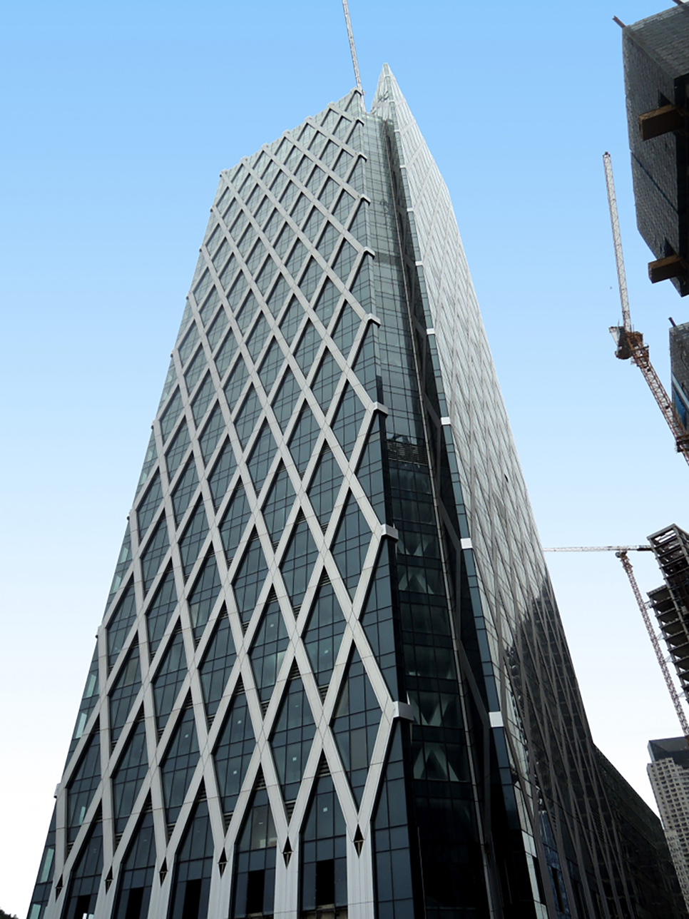 The total land area of the project is about 9300 square meters, and the total building area is 80500 square meters, of which 19524 square meters are underground and 60967 square meters are aboveground. The base area of the building is 3268 square meters, and the main building has 38 floors above the ground and 4 floors underground; The podium has three floors above the ground (local four floors), and the main building height (parapet) is about 176.80 meters.