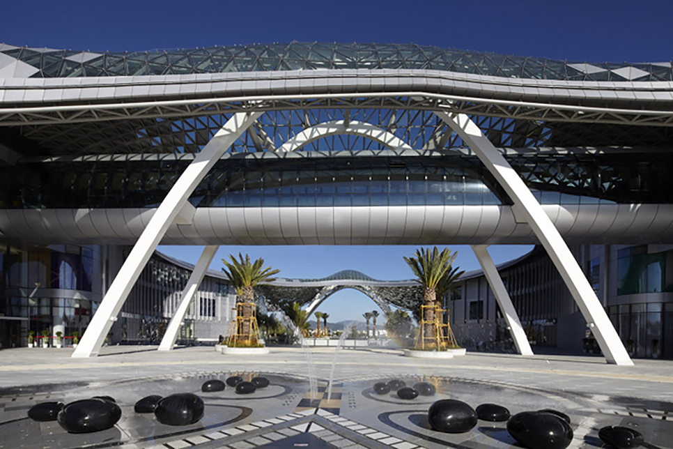 It has a span of 50 meters and a height of 35 meters. It is supported by three groups of huge steel arches. It is composed of 1900 metal plates and 3200 glass plates enclosed by curves. It is magnificent,. Functionally, it not only ensures good natural ventilation and lighting, provides an environment for tourists to relax and shade, but also creates an ideal semi-outdoor commercial entrance space atmosphere. The main entrance square is the main traffic diversion and public activity area. In order to encourage pollution-free transportation, pedestrian walkways are specially designed to establish the connection between streets and buildings, and a variety of passages and steps are designed to guide users to the business center. The design inspiration comes from the dried Begonia Bay flower. The shopping center has been connected with the symbol of the interior space of Sanva. The roof gap is covered on it to maximize natural lighting. The huge entrance is in the north, the south side of the bridge and the large free-form roof help link the two buildings as an organic whole. The building, organically shaped, embraces the entrance of the website directly at the north and south seashore of the 50-meter public axis in the center. The shopping center will be divided into two parts and connected with each other by a huge entrance, namely the starting point of the independent building landscape axis. The front door of the person who wrote 1900 metal plate and 3200 glass is a large span covering more than 50 meters and 35 meters high, supporting the forgery of the large steel arches.It system to ensure that the natural light is met, providing a sunshade shelter for tourists and creating a semi-commercial activity-open environment. The main gate is connected with the local public welfare activities. The walkway connects the city streets and buildings and various channels. The step is to enter the mall for the main customers.