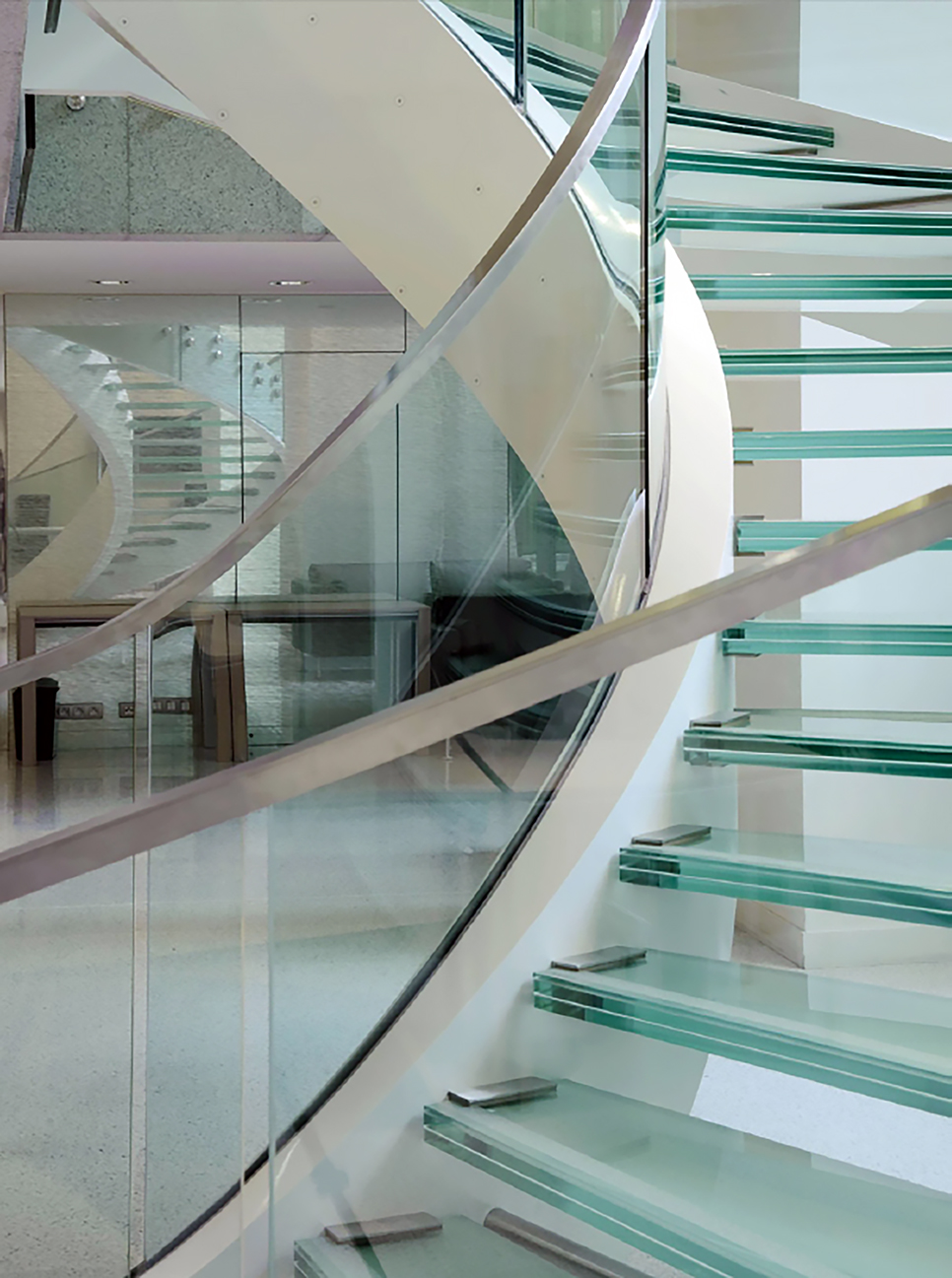 迎宾空间面向花园开放,光线可深入建筑的核心区域,本着这一理念,内部环境的色调由装饰材料的明亮度实现其过度效果;电梯通道采用带有丝网图案的玻璃配以欧洲橡木的墙面以及地面纯白色花岗石的明快色调,整体建筑的内部风格简洁明朗。