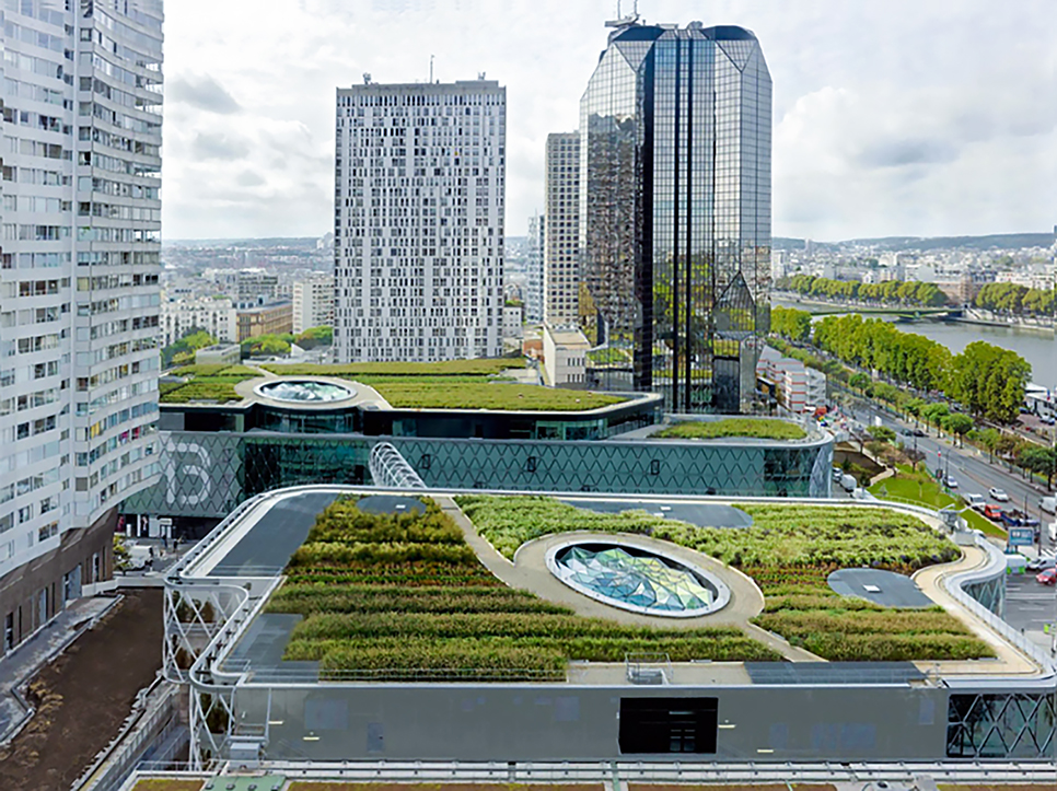 The completed commercial center is two island buildings located on both sides of the road, which are connected with the atrium in the center of the opposite side of the building. This road is also the entrance from the Grenacle Bridge to the 15th district of Paris. The commercial center has also become a landmark building in the 15th district of Paris.