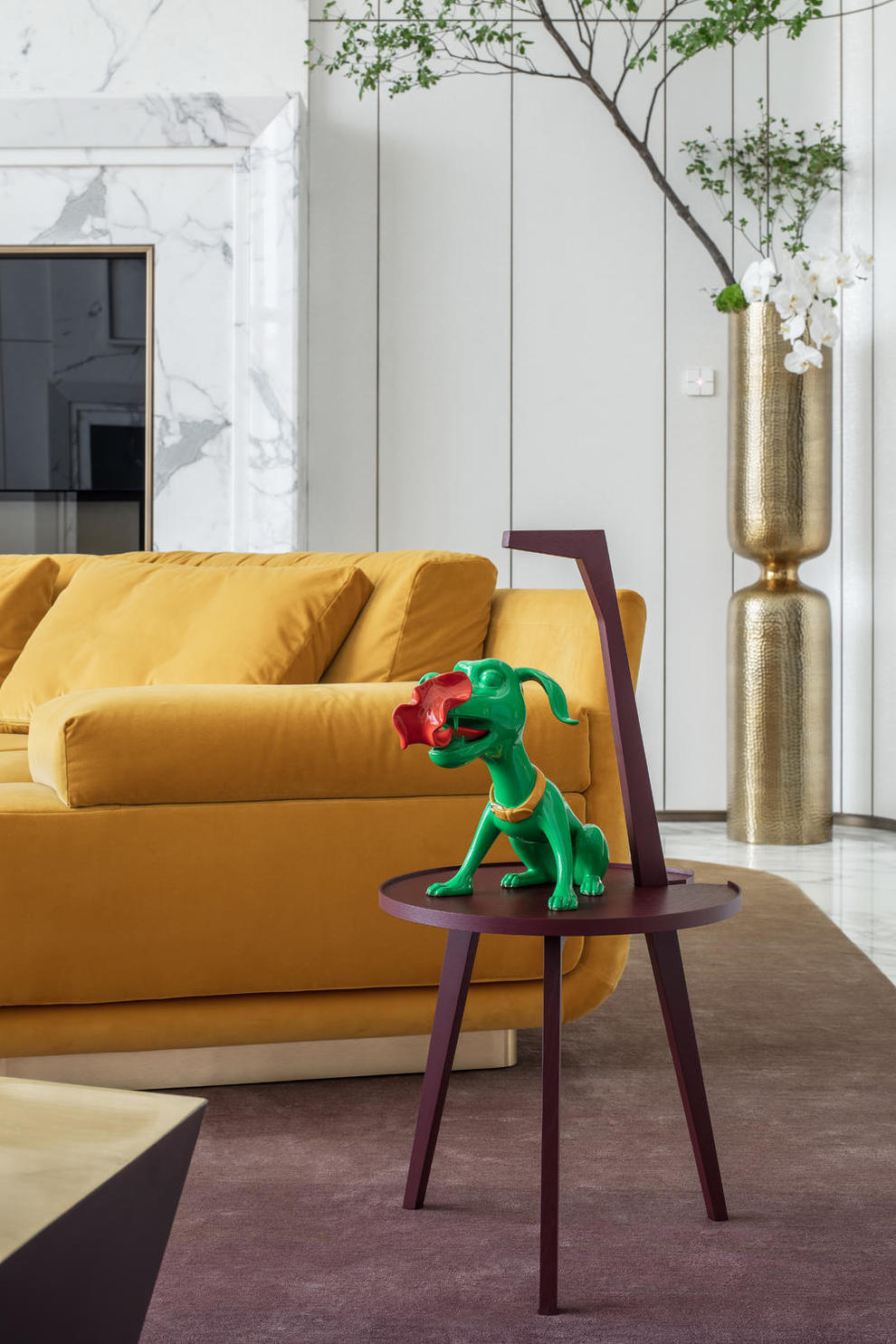 Damienhurst's yellow butterfly is independent of the side of the living room and looks at the whole space. At the same time, as a screen wall leading to the elevator hall, it breaks through the visual composition and adds a vitality to the whole space in a dignified way.