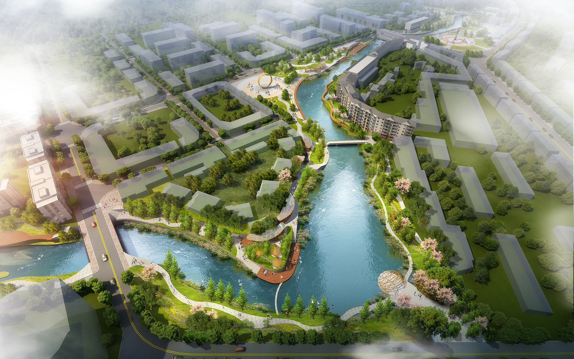 The project design fully analyzes various development factors such as the region, culture, characteristics, tourism, industry, and other aspects of the county seat. With the purpose of urban repair and ecological restoration, and the national development strategy of "urban landscape integration" and "rural revitalization" as the background, the project is viewed from a higher perspective, aiming to identify the future role of Biyuxi, truly achieve "returning the river to the people", and change the city image.