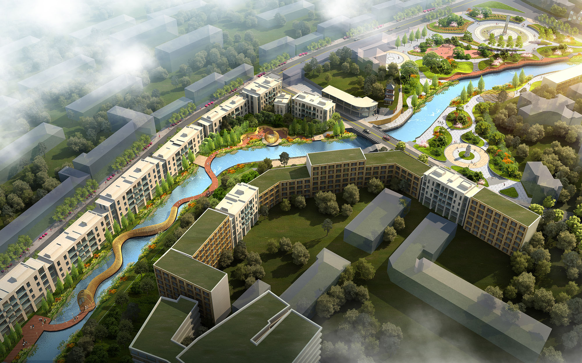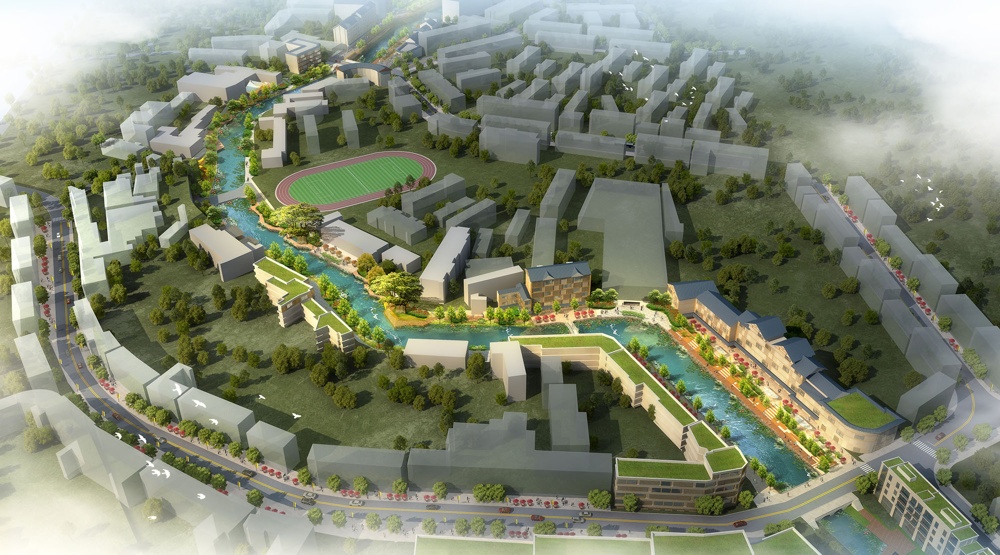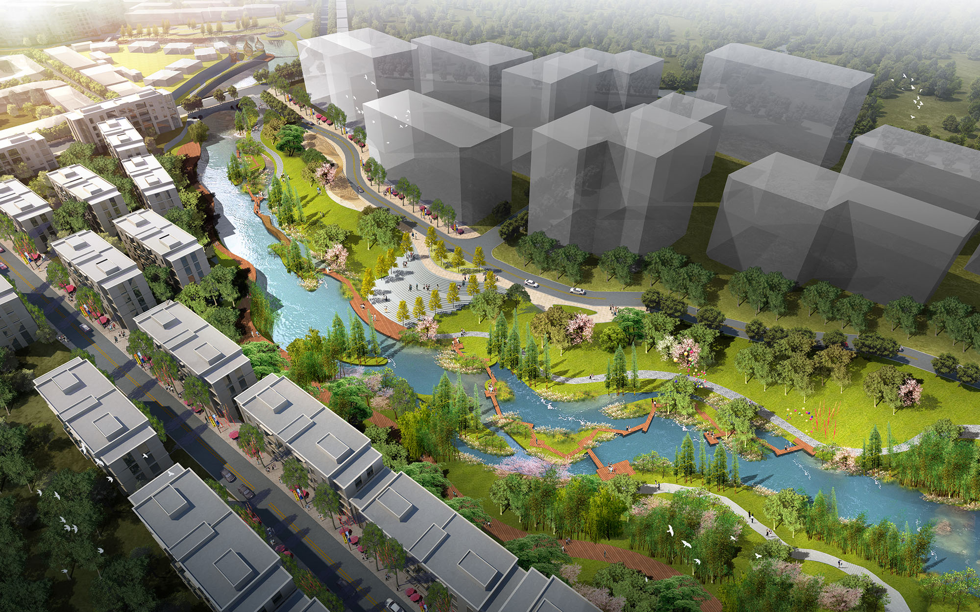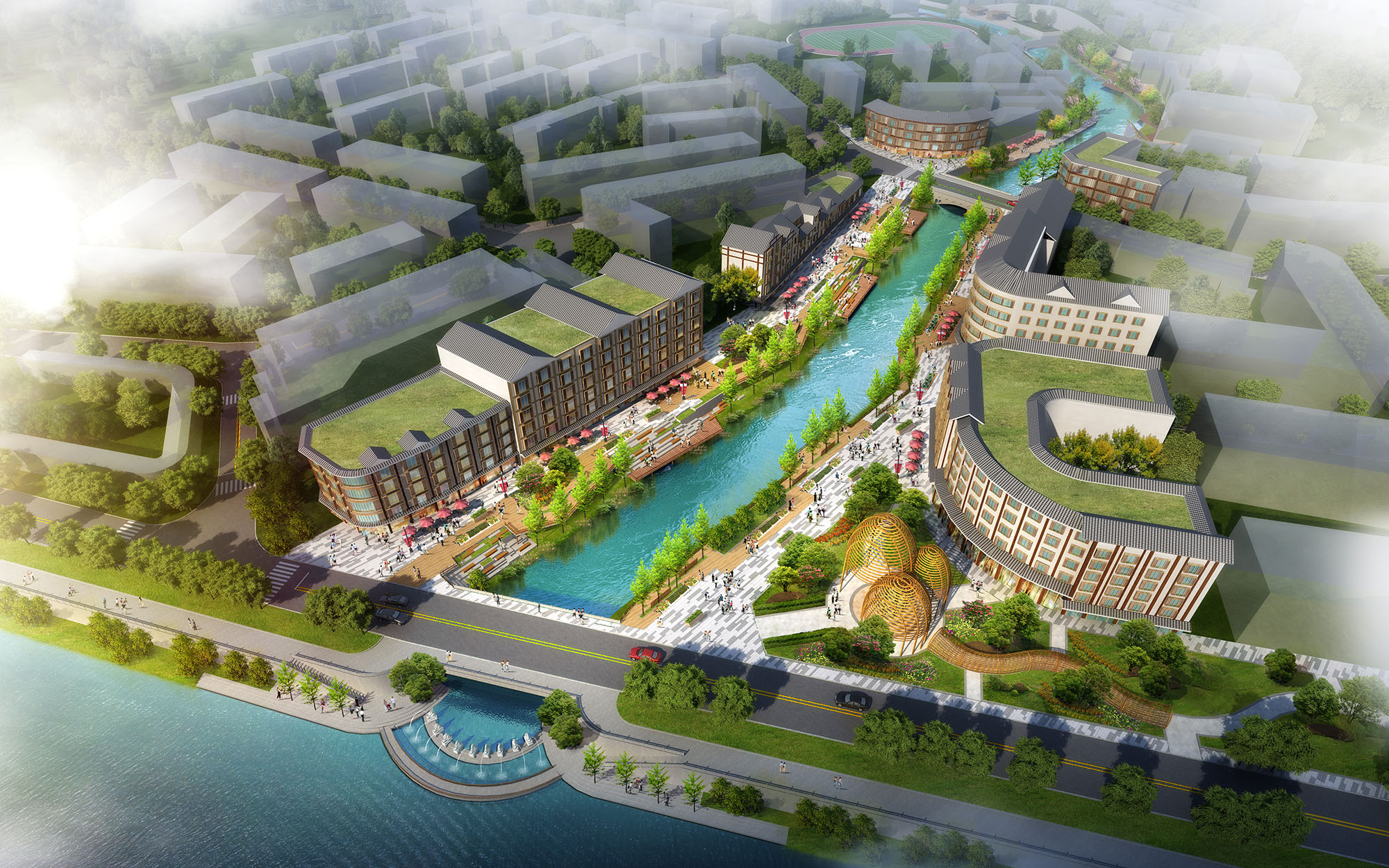 项目设计充分分析了县城地域、文化、特色、旅游、产业等各方面发展因素,以城市修补、生态修复为宗旨,以“城景融合”“乡村振兴”国家发展战略为背景,以更高的视角看待项目,旨在为碧玉溪找准未来的角色定位,真正做到“还河于民”,改变城市形象。