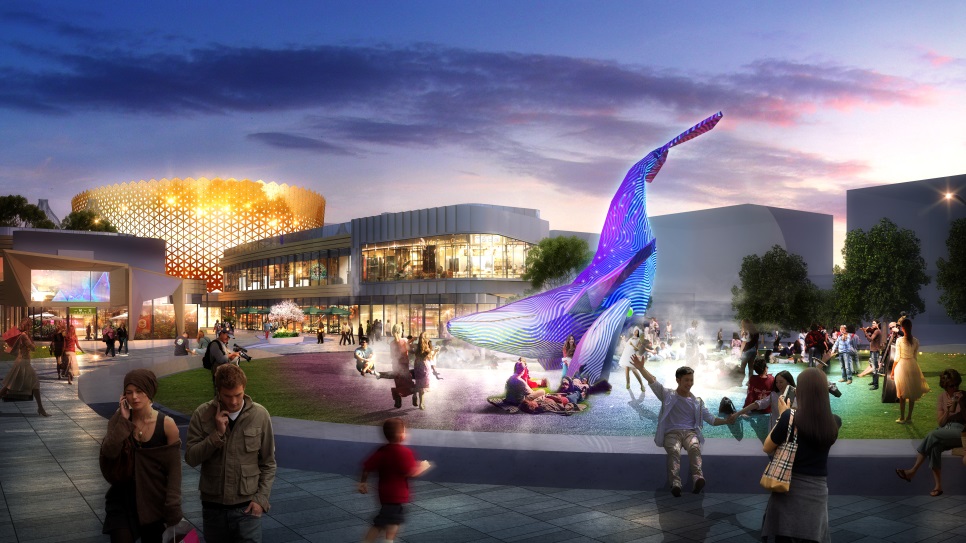 武清万达广场不仅在大商业内精心布局,集大型超市、购物、儿童娱乐、餐饮等业态一应俱全,满足顾客一站式消费需求, 其空间设计及合理的人流动线规划,融入了星空、自然、时尚等元素,采用太空飞船、宇航员等形象设计,打造别具一格的街区景观,极大提升顾客的购物体验。