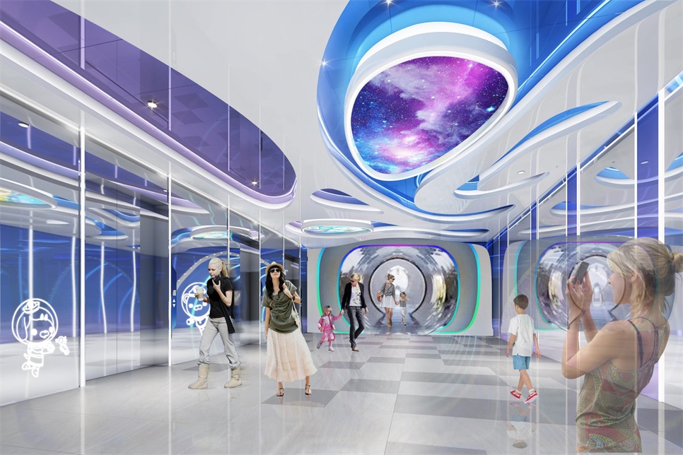 Wuqing Wanda Plaza is not only meticulously arranged in large commercial areas, but also provides a comprehensive range of business formats such as large-scale supermarkets, shopping, children's entertainment, and catering to meet customers' one-stop consumption needs. Its spatial design and reasonable pedestrian flow planning integrate elements such as starry sky, nature, and fashion, and use image designs such as spaceships and astronauts to create a unique street landscape, greatly enhancing customers' shopping experience.