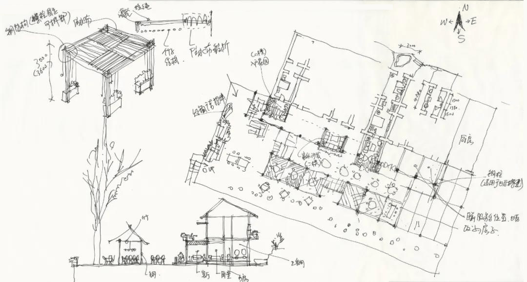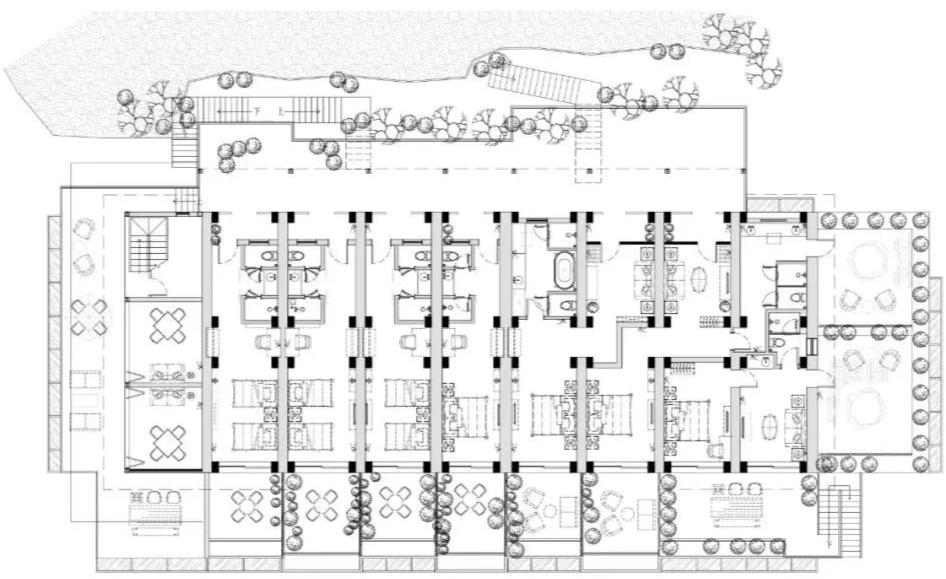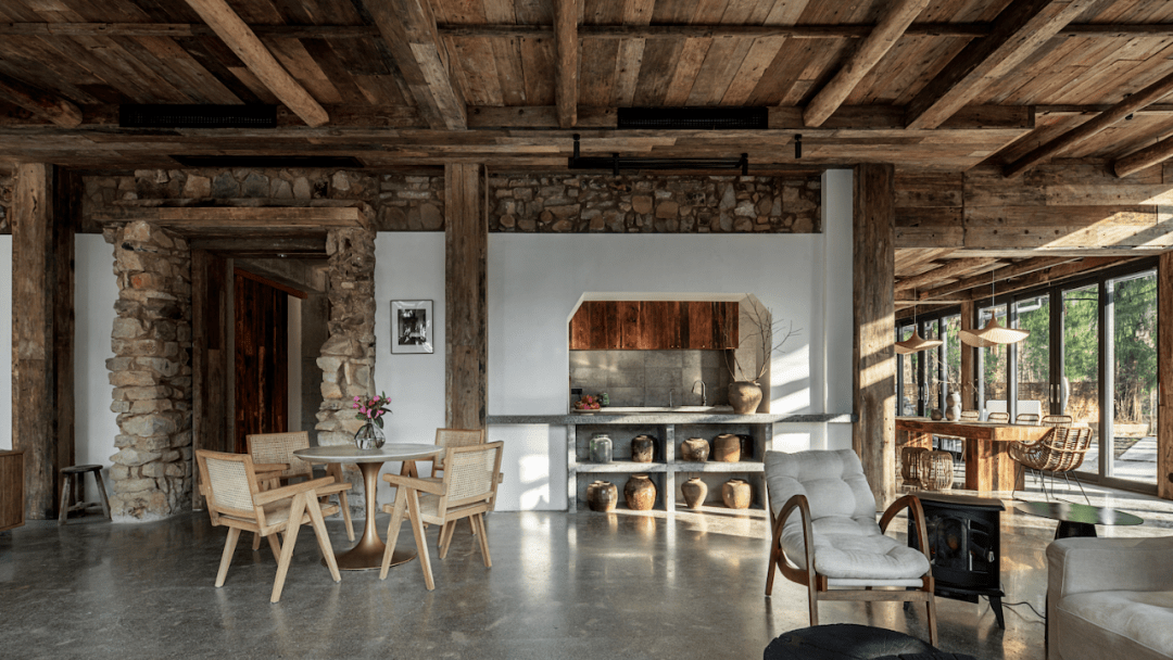 The fir forest around the project has been carefully preserved. The scene of building around trees has awakened people's sense of belonging to nature and hometown. This courtyard is also called "Shanyu" by its name. In the design of interior space, it is necessary to retain and respect the local rural culture, and implant a new vacation mode to create a natural living state that belongs to the countryside alone.