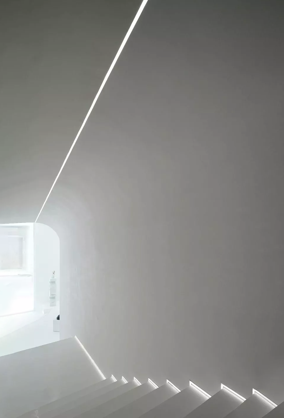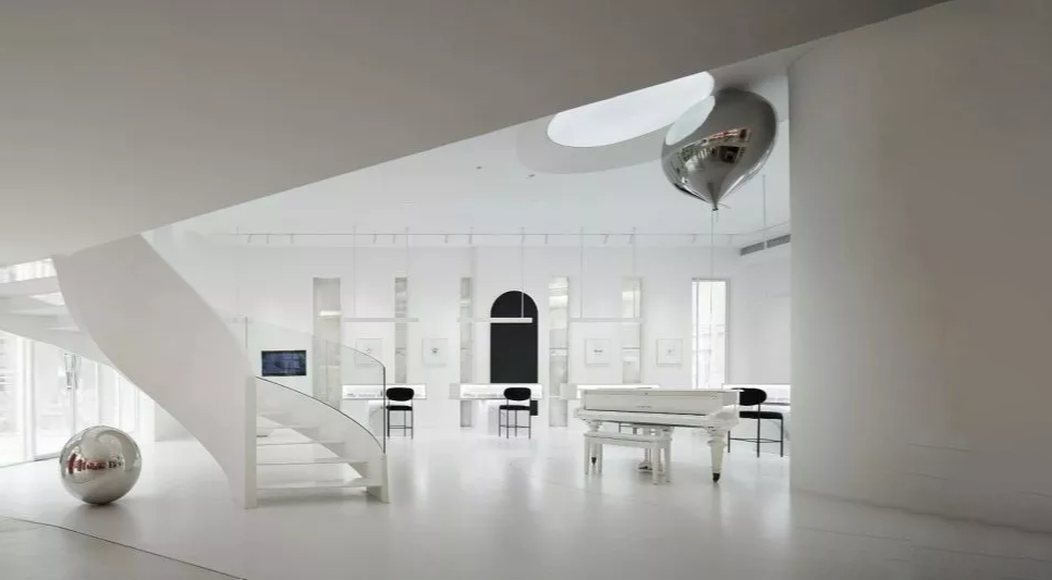 Light is one of the most advanced expressions of architecture. Space uses light to blend with architecture. We use transparent glass curtain wall structure to form an outward display space. At the same time, it also forms a sense of transparency and introduces more light. Some curved building structures are made inside as a space partition between the front and rear areas to form an inner building. The arc in the morphological vocabulary is combined with the inspiration of light to form the overall structure of the space. At the same time, this structure can block some natural light, which is projected through the arch hole to form the light shadow contrast of the space. At the same time, we also used some special-shaped arch holes at the top to simulate the sky light and create the feeling that the light source penetrates the top surface.