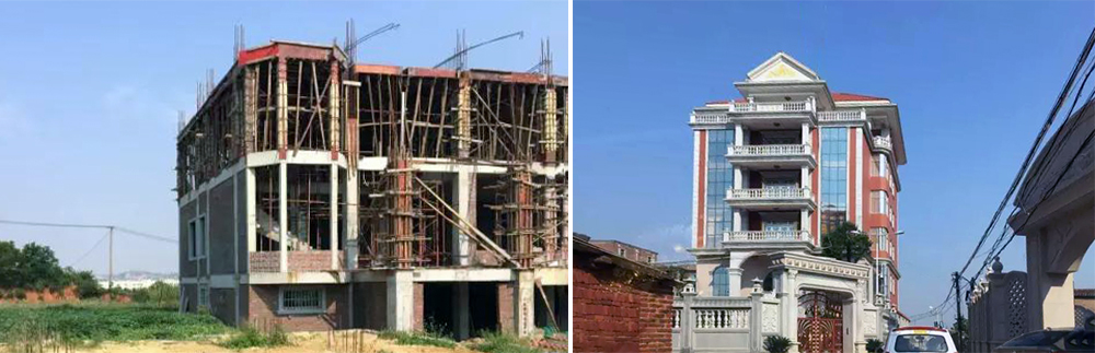 The project is located in a small village in Putian, where every household lives in a small villa. The base is more than 20 meters deep, with buildings blocking it to the east, a wide view to the south, and a mountain to the west. After starting construction, many problems were discovered and it was decided to demolish and rebuild.