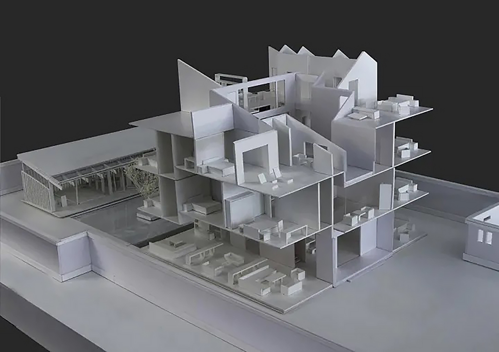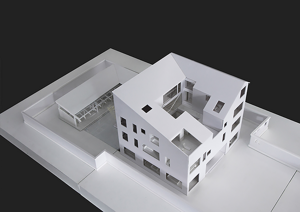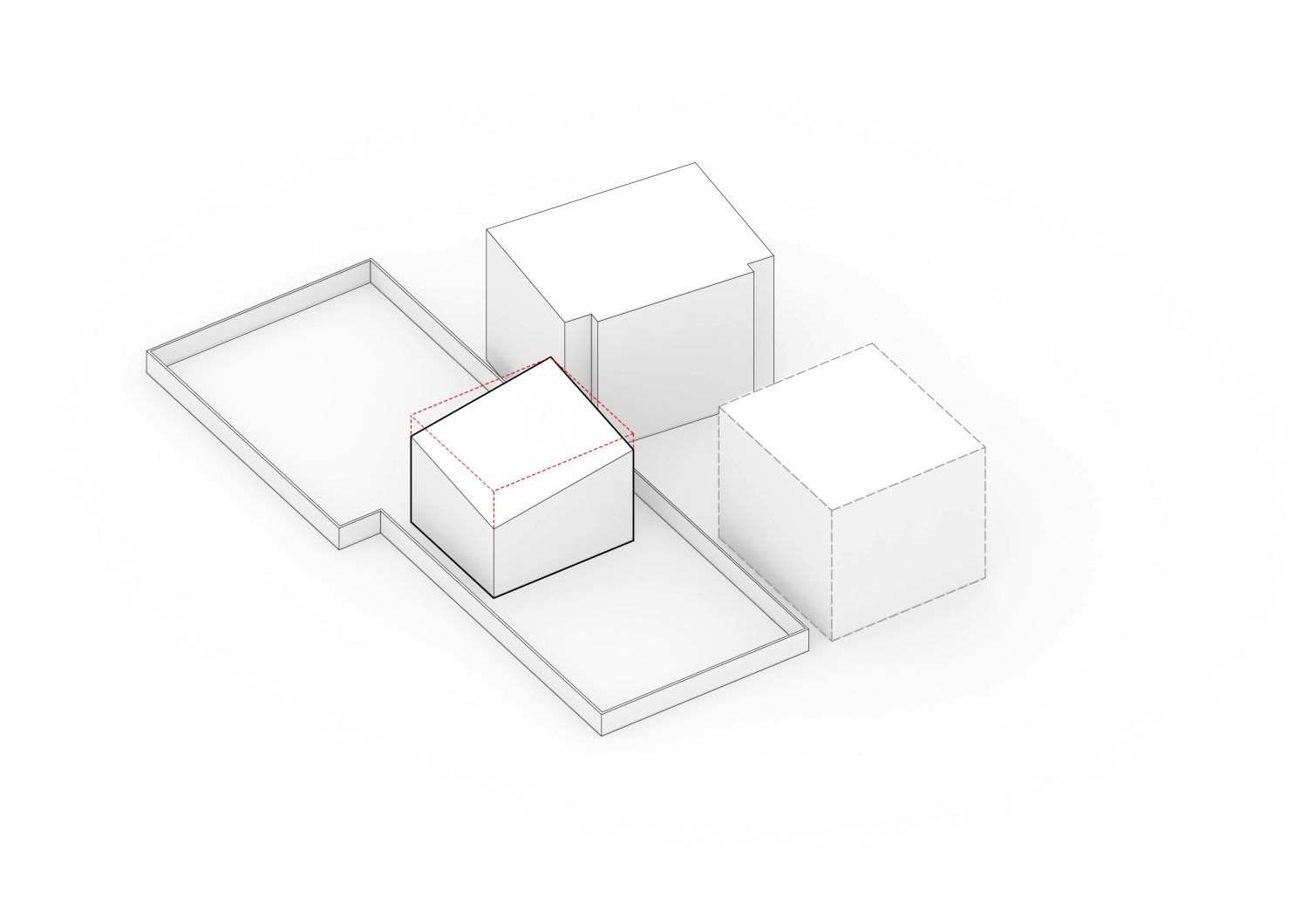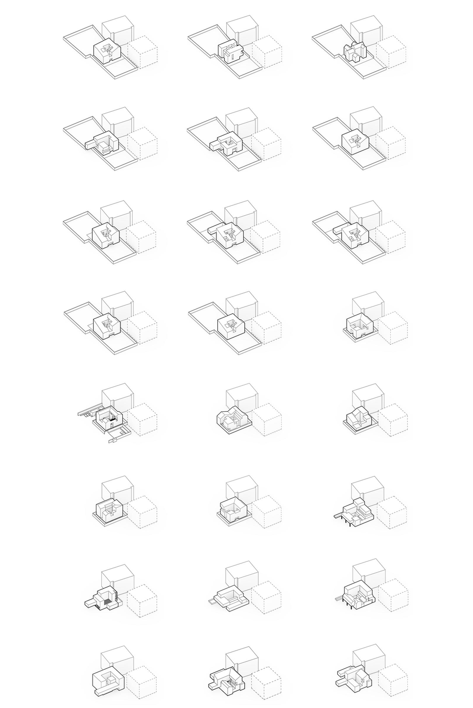 为了让更多的南向阳光进入室内,将建筑体块的东南角以倾斜的角度削去一块。