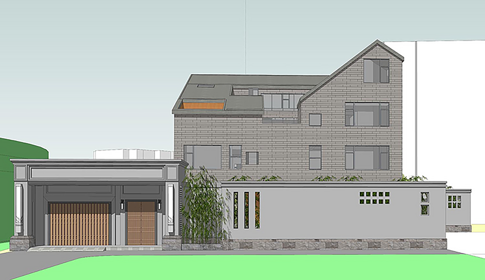 青砖外墙,倾斜屋顶,水泥围墙,再加上几株翠竹点缀在内外,几分传统建筑神韵油然其间。
