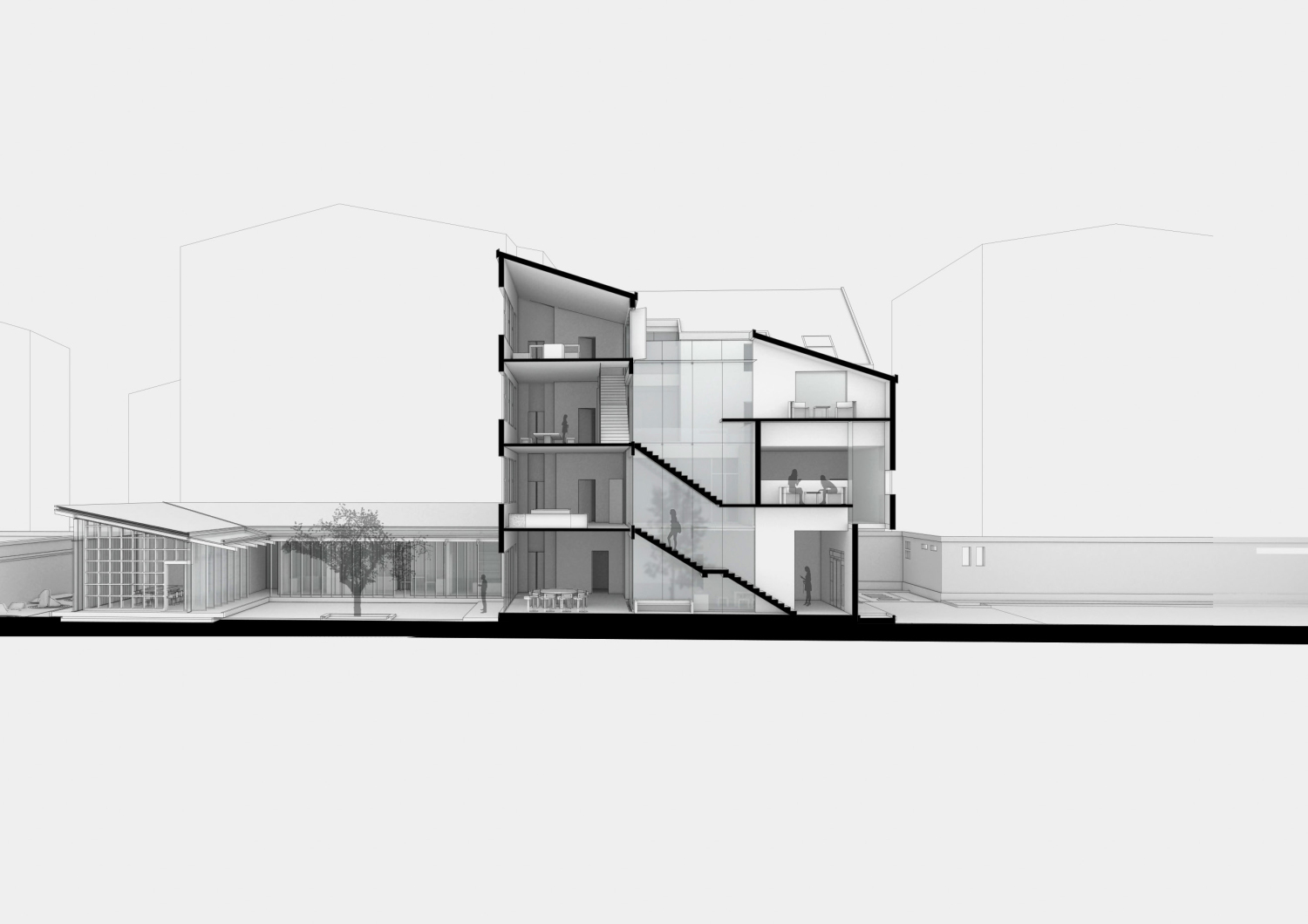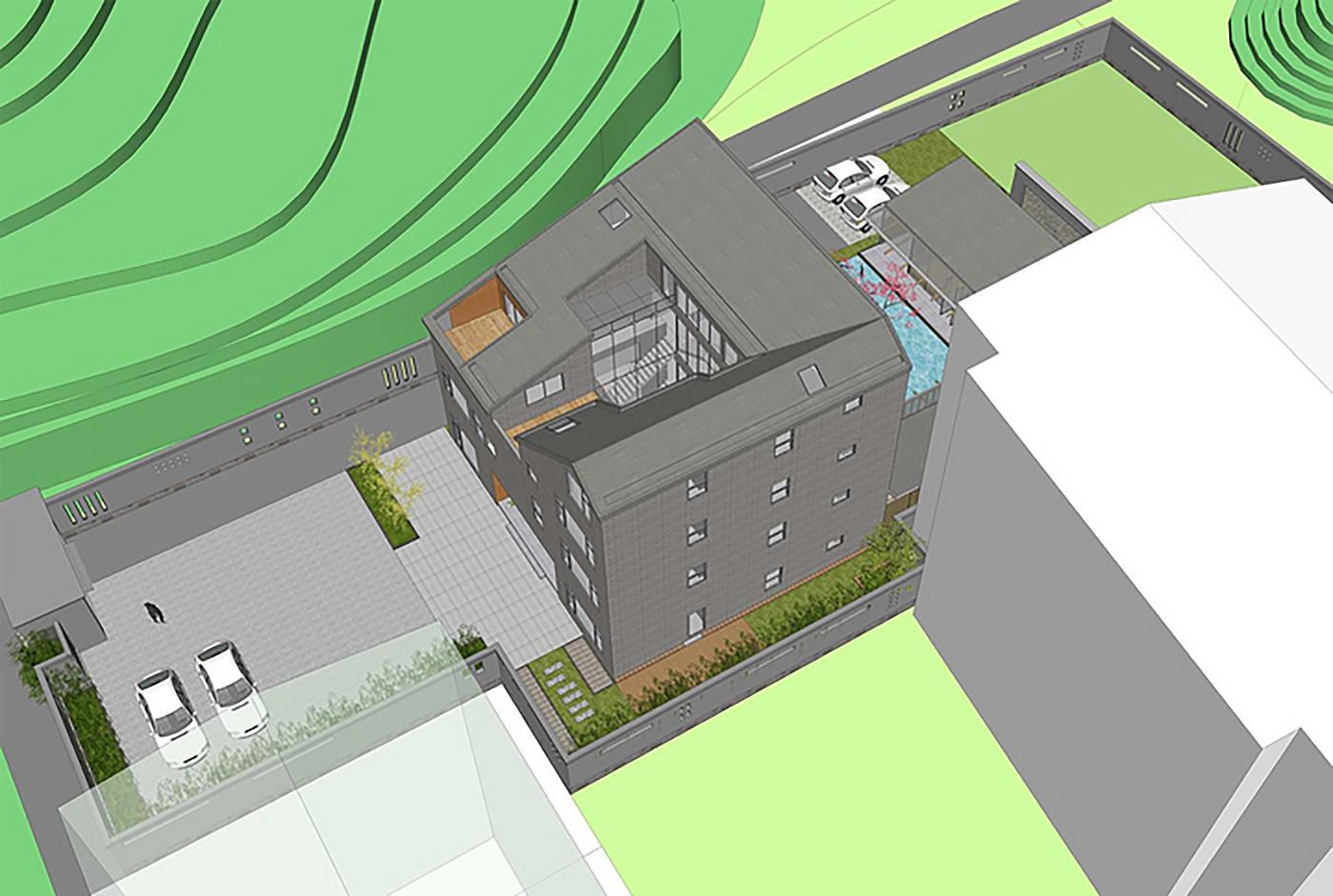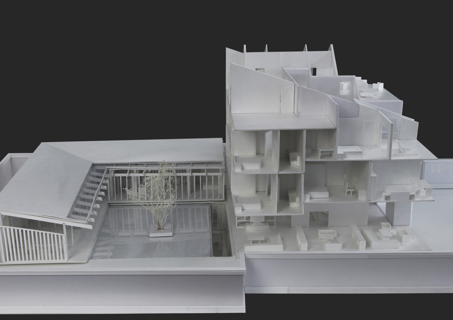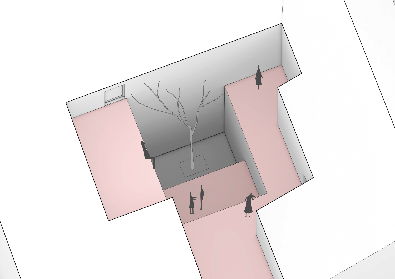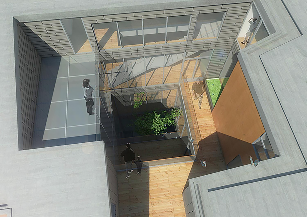 Allowing as much area as possible to indoor space and ensuring convenient lighting inside the atrium, gradually increasing the atrium area from bottom to top.