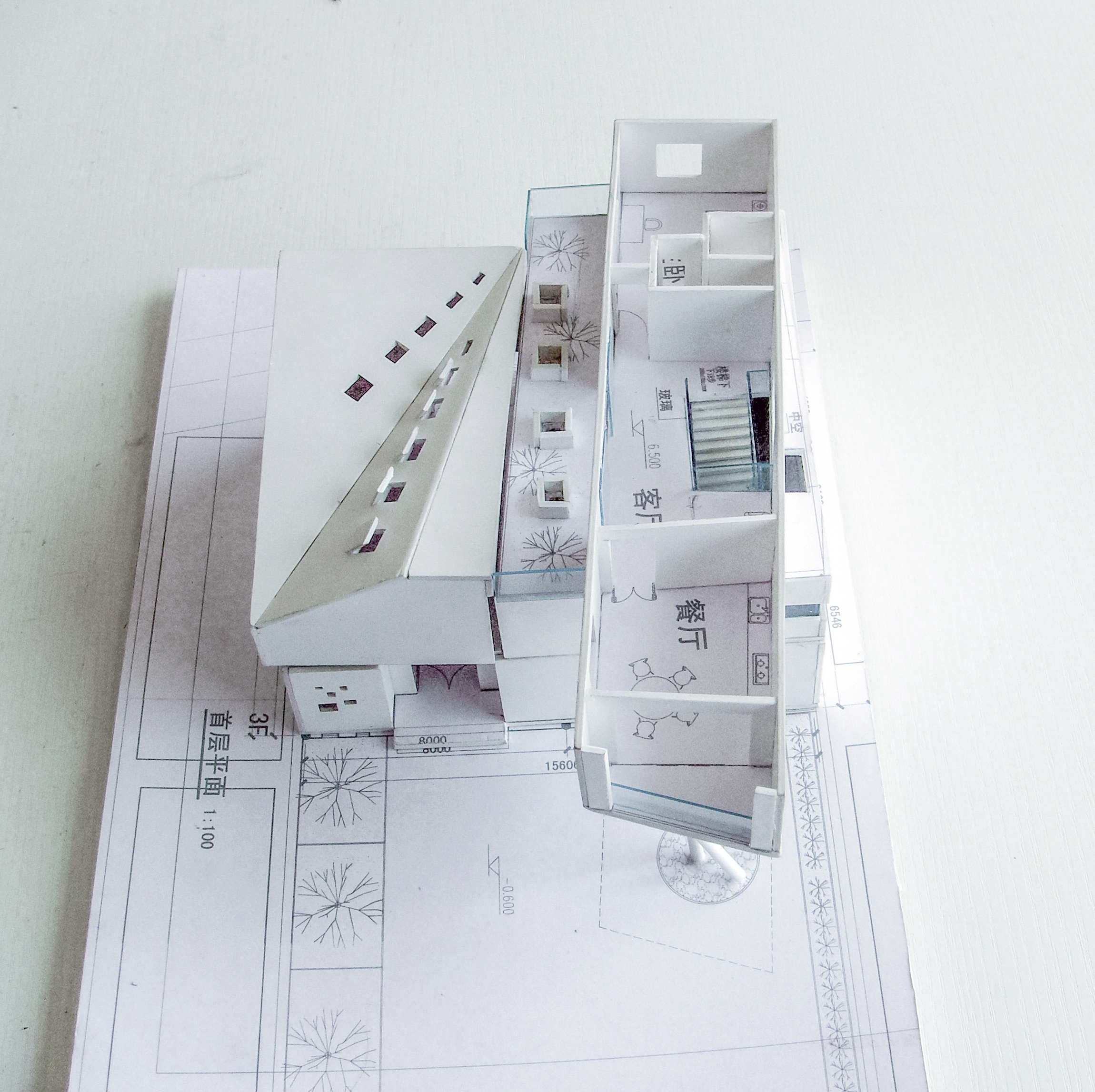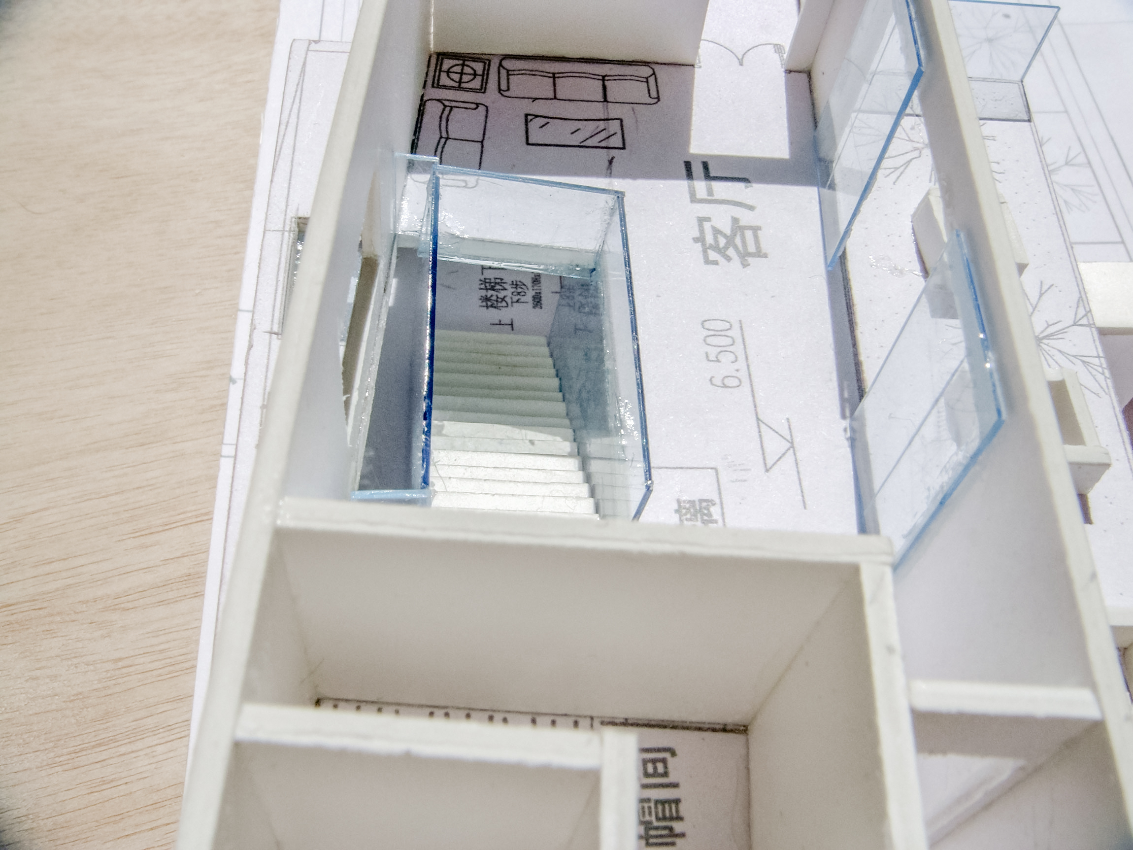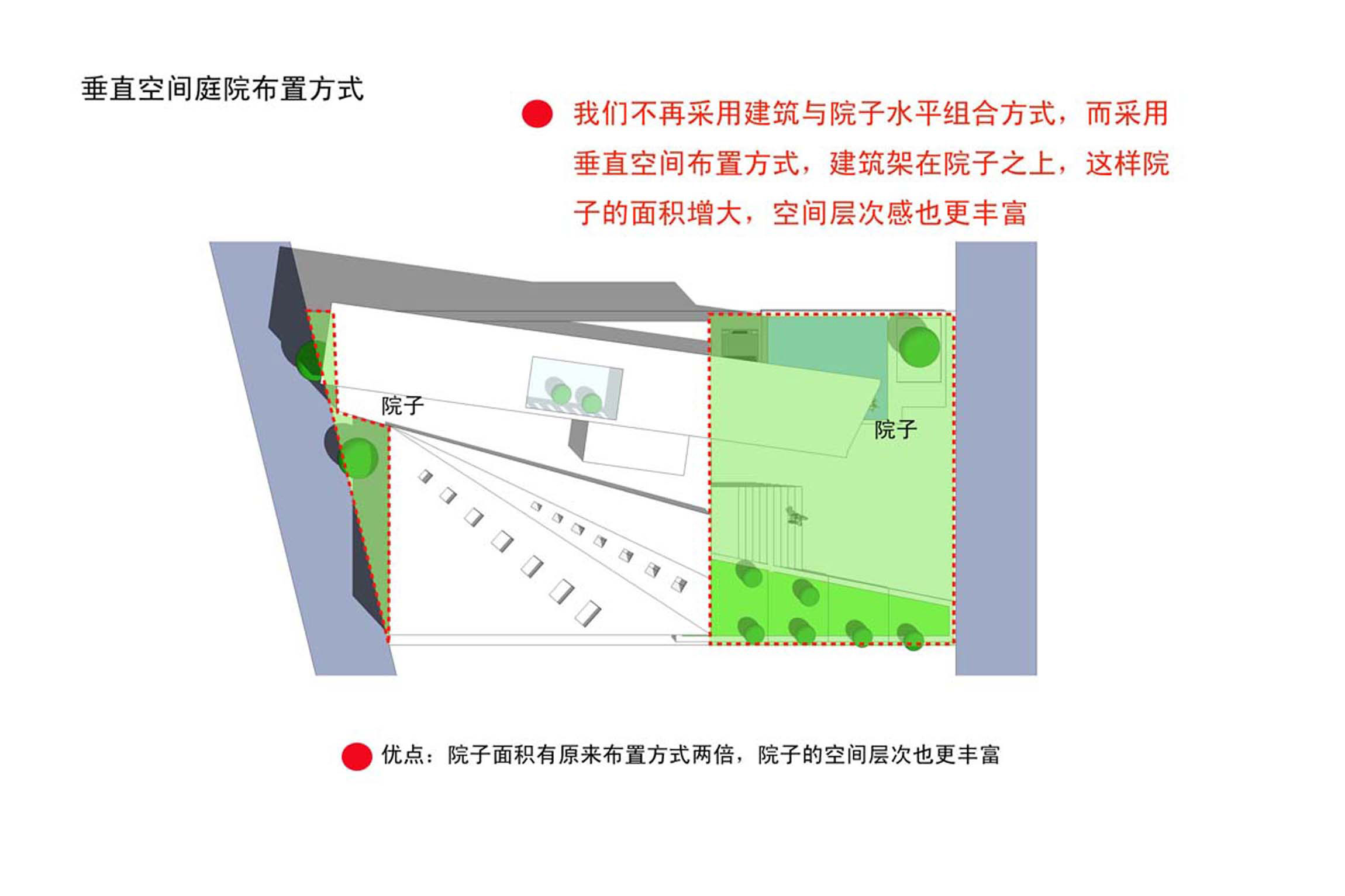 基地的南北面紧贴相邻基地的建筑,南面采光困难。